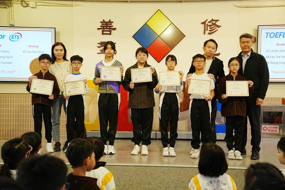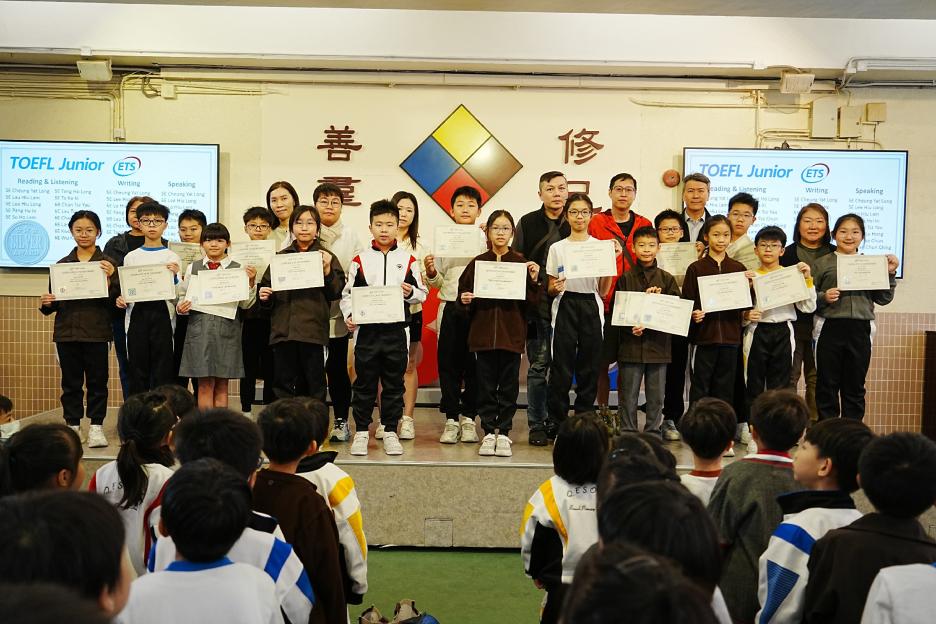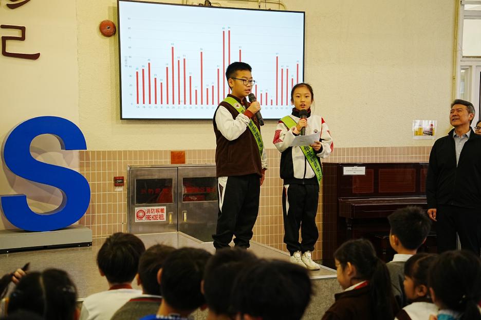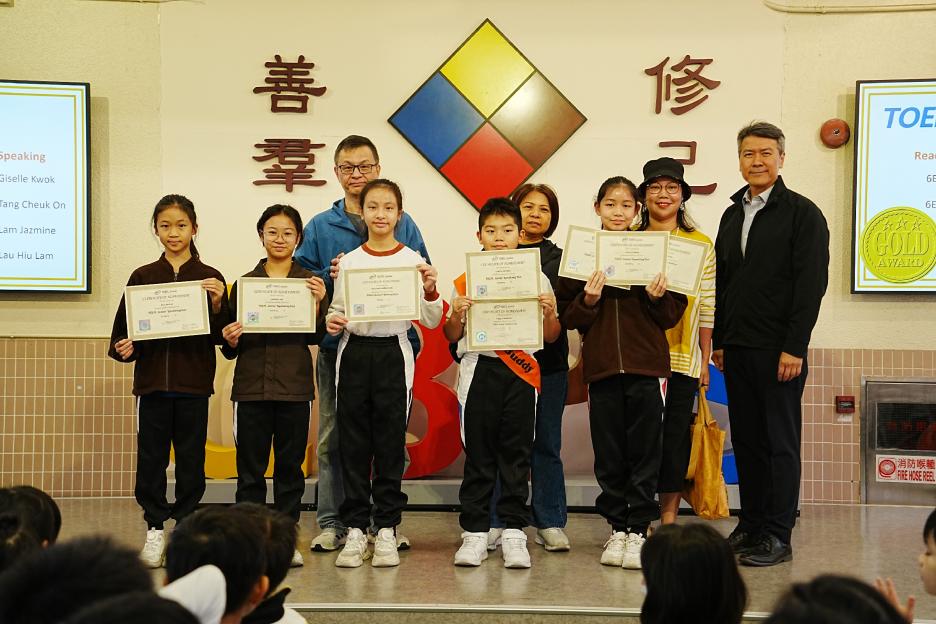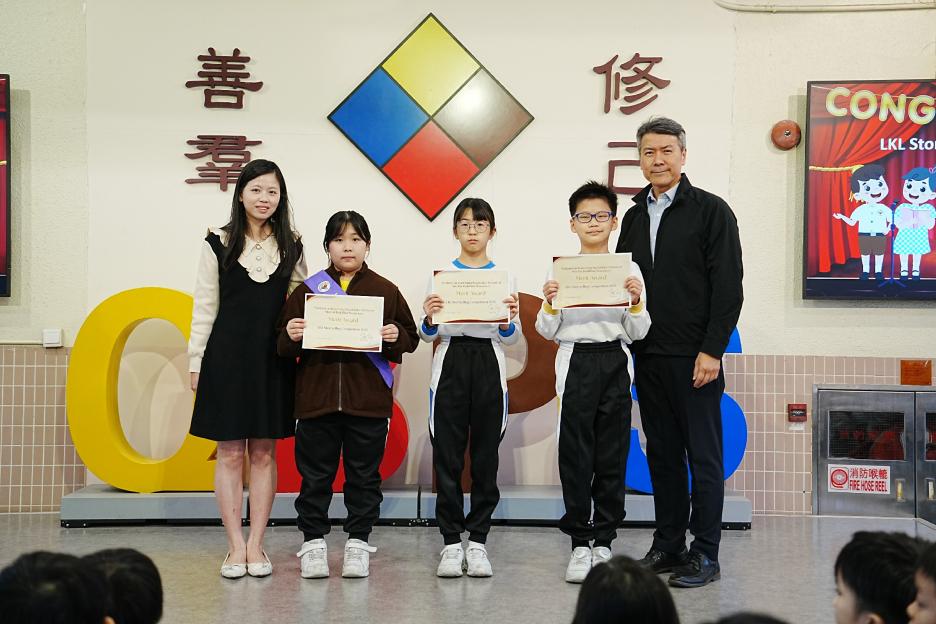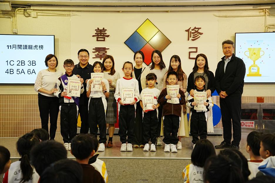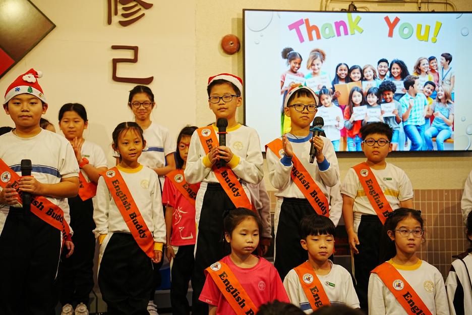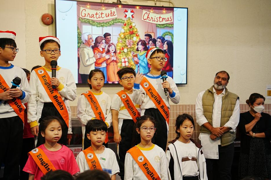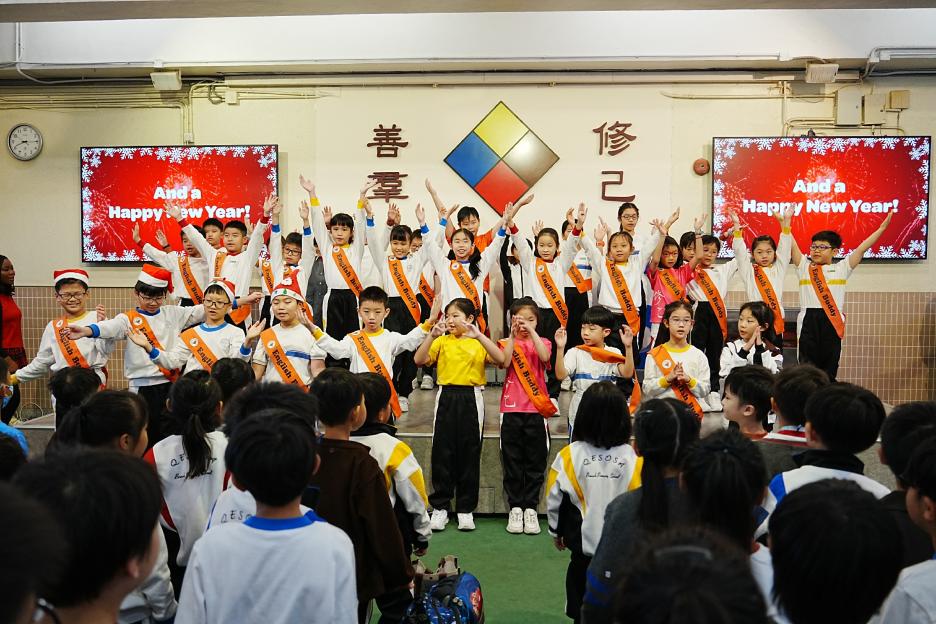 今天是英文早會。首先由English Buddies為我們帶來一系列聖誕歌曲,預祝大家聖誕節快樂!接著是班際借閱比賽頒獎,各班同學都努力借閱圖書,只要多借書、多閱讀,就能為班爭光,共享榮譽與獎品!另外,「25-26悦讀千里號獎勵計劃」計劃已啟航,同學一起讀,一起獎,探索書海無邊界。最後是魔力橋數學棋小學邀請賽初賽頒獎。