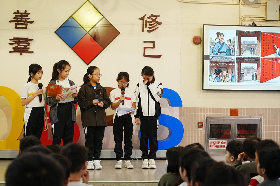 今天是普通話早會。首先有普通話大使為我們分享成語故事。接著是向老師致敬——親子繪圖比賽2025(小一至小三)及四格漫畫創作比賽2025(小四至小六)的頒獎。最後是伊Class龍虎榜的宣傳。