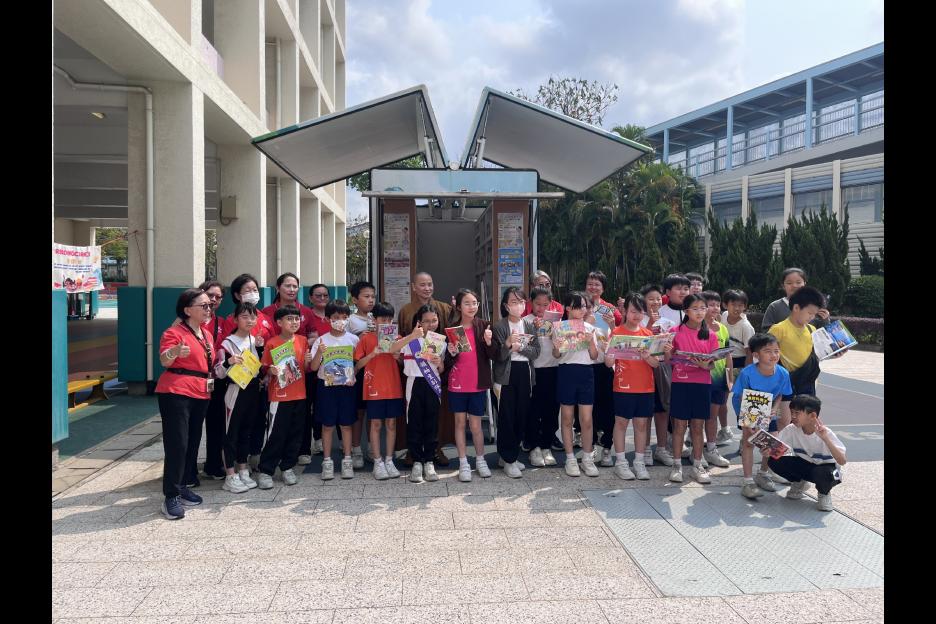 3月26日和27日香港佛光道場十多位雲水書車義工和書車來到我們學校操場,為同學講故事和一齊閱讀。當天來到學校時已吸引不少學生注目。當書車展開雙翼,首次見到書車的低年班學生表現得十分雀躍。雲水書車為學生營造良好的閱讀與聽故事環境,提升閱讀的投入度。