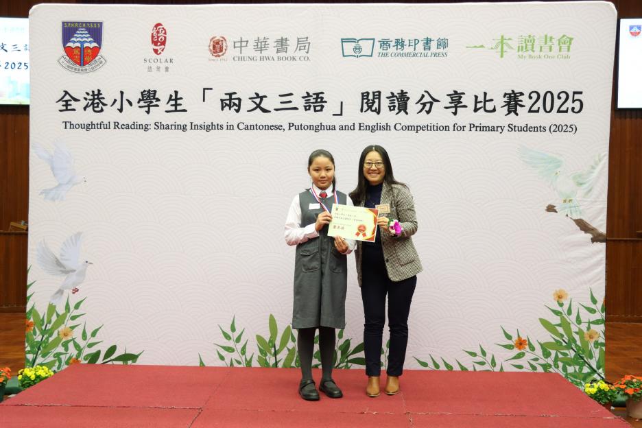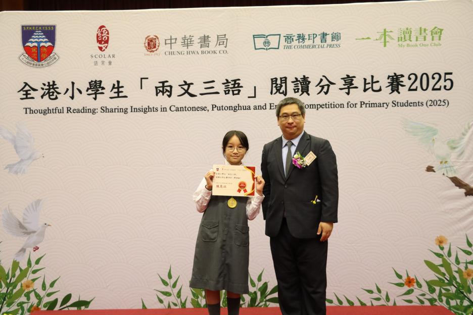 活動簡介 | 本校8位同學早前參加了由十八鄉鄉事委員會公益社中學主辦的全港小學生『兩文三語』閱讀分享比賽2025, 獲得優異成績。3位同學獲得優異獎,評判要在300多份參賽作品中每個組別揀出13份作品,同學能在比賽中獲得獎項,非常難得。 普通話組 6A 姚皓民獲得良好獎 6E鄭忻翹獲得優良獎 5B蕭彦淇獲得優異獎 5E李玥怡獲得優異獎 在粵語組 5A余芷晴 獲得良好獎 5D王浚錡獲得良好獎 6D鄧捷維獲得良好獎 5E陳恩以獲得優異獎 |