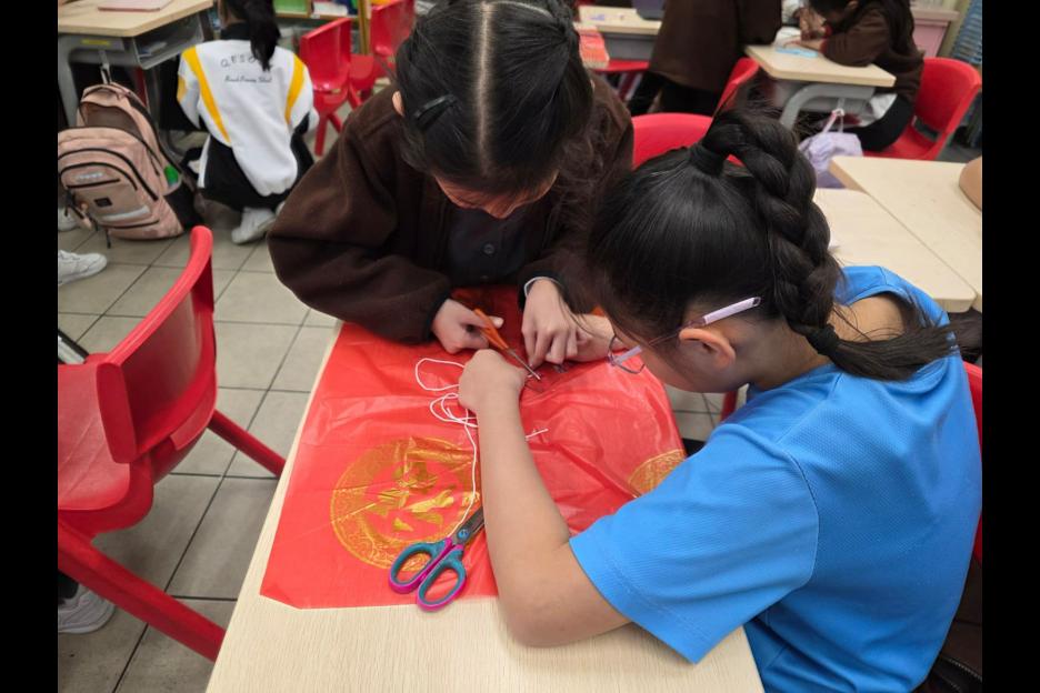 數學科STEAM活動「迎春接福降落傘」配合中國傳統節日「農曆新年」,設計一個可在空中停留5秒的降落傘。看看你的降落傘在全班中,可否成為在空中停留時間最長的降落傘。 同學都紛紛在降落傘寫上「新年快樂、學業進步等等」的新年祝福語,享受活動之餘,亦預祝來年更好。