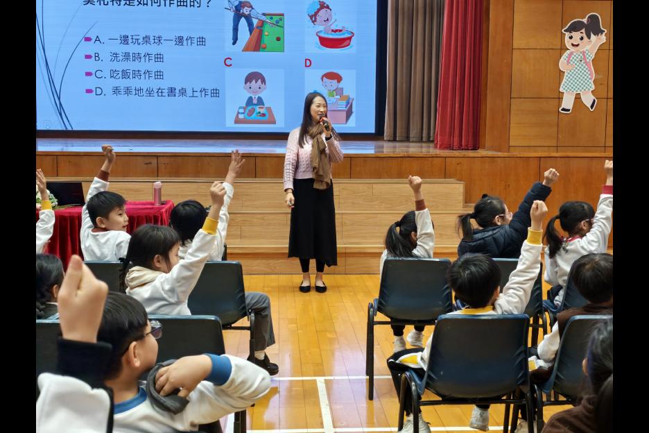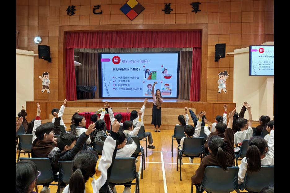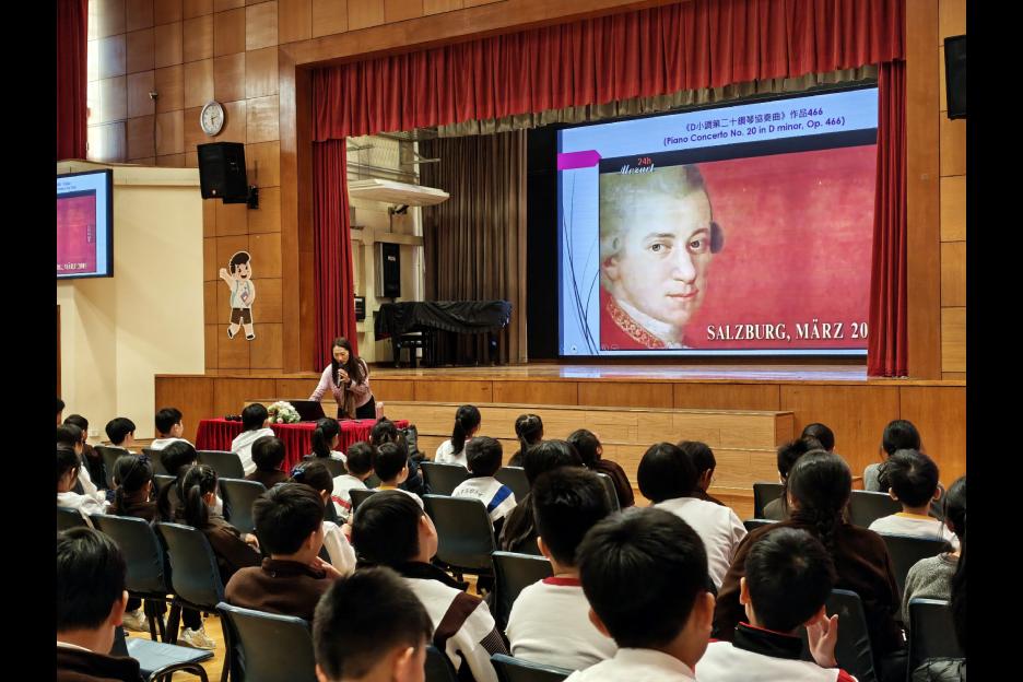 音樂科申請了音樂事務處的校園音樂工作坊計劃,請得黃學慧博士為同學介紹各著名音樂家,並分享他們的有趣的生活秘聞