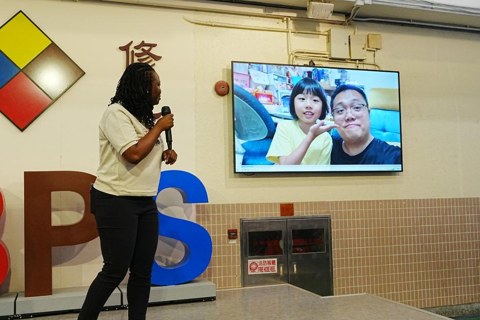今天是英文早會,即將來到的星期日便是父親節,英文大使帶領我們唱出父親節的歌曲,同學們都很喜歡呢!祝天下的父親父親節快樂!接著是5月孝親之星的頒獎,恭喜各位孝子孝女得到這個獎項!再來是班際借書龍虎榜的頒獎,恭喜1D、2C、3D、4E、5E和6E班。最後是數學科活動的宣傳。