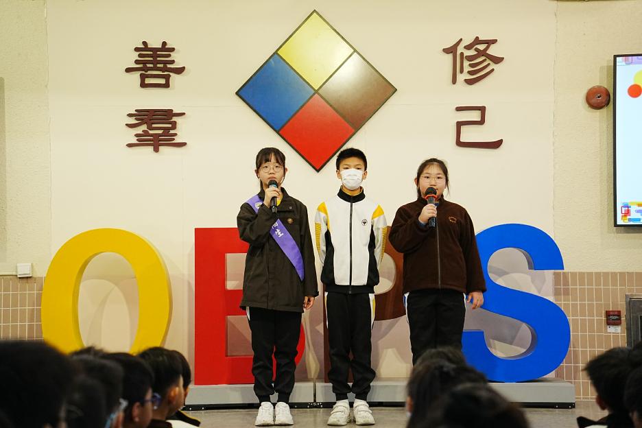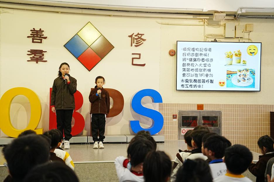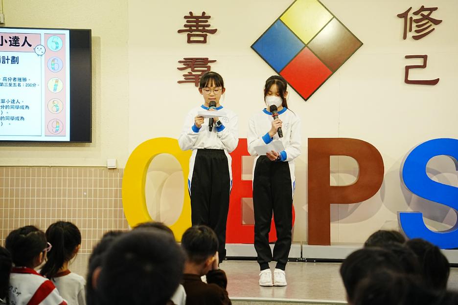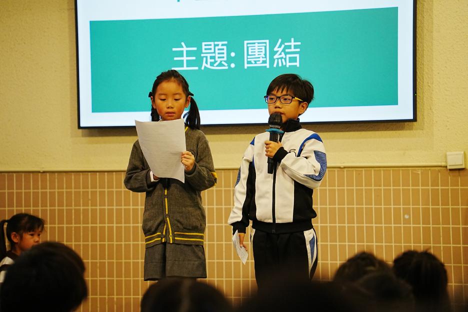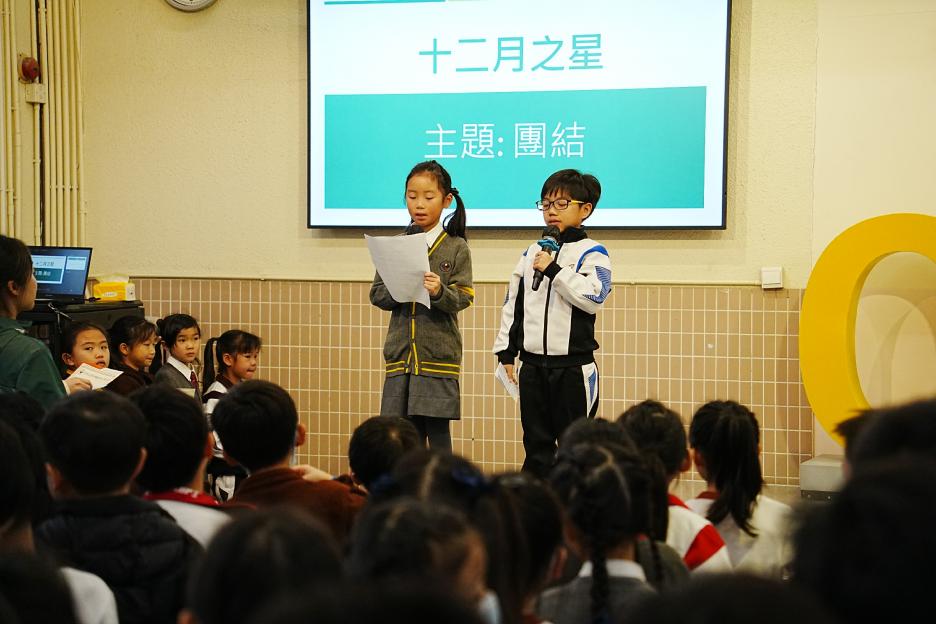 今天是普通話早會。首先有每月之星的頒獎,這次的主題是團結,恭喜各位團結之星,欣賞他們努力為群體貢獻,尊重群體的福祉。再來是數學科-速算達人(上學期)的頒獎,最後是人文科攤位活動的宣傳。