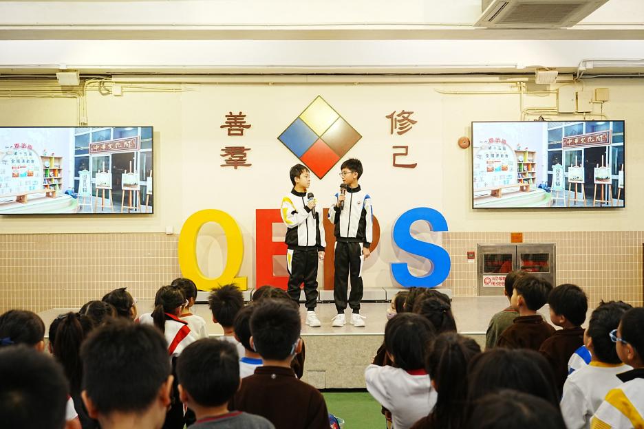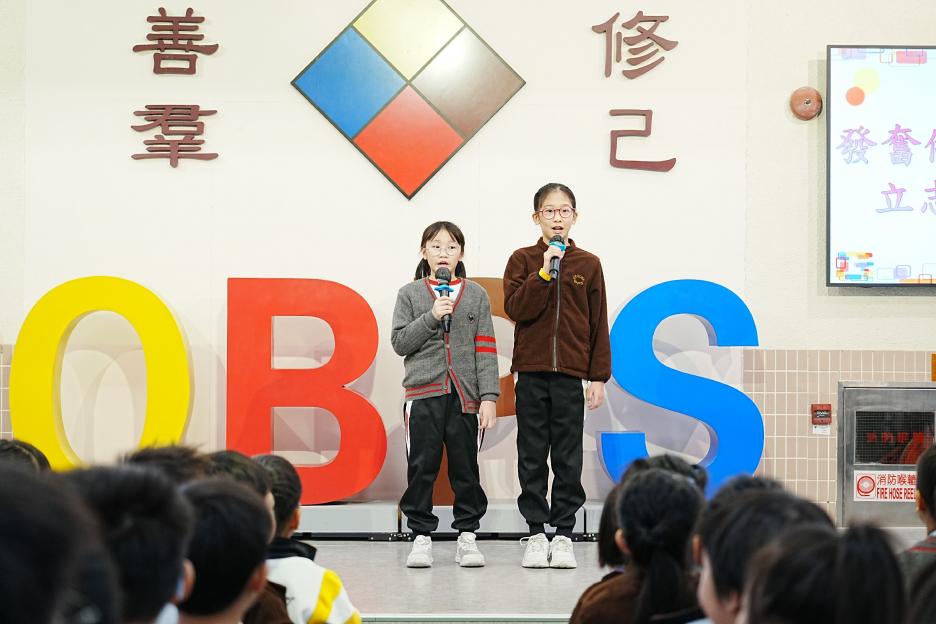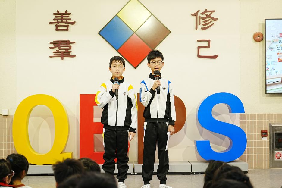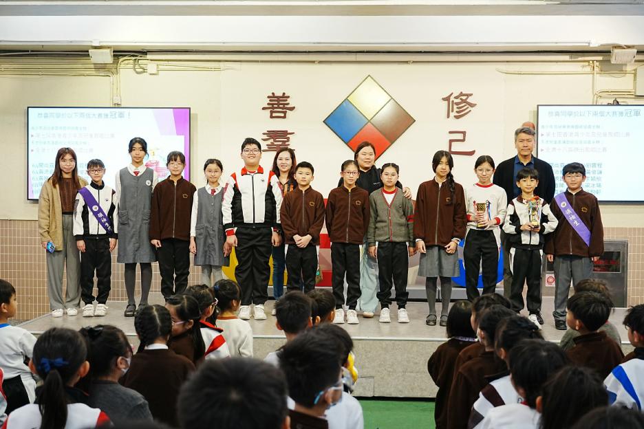 今天是普通話早會。首先是「第四屆機甲大師(屯門)分區挑戰賽」、第七屆香港青少年及兒童歌唱比賽、全港十八區傑出歌唱比賽、香港海洋公園保育基金「無塑淨海」視覺藝術設計比賽的頒獎。接著是領袖生隊長的分享,最後是中華文化閣活動及中文科猜燈謎活動的宣傳。