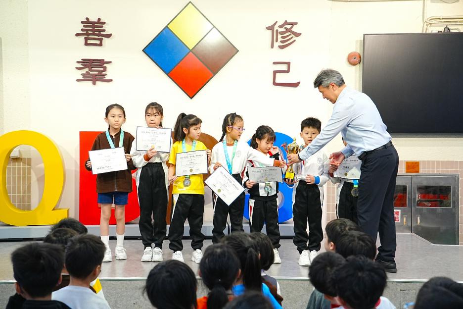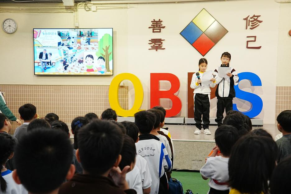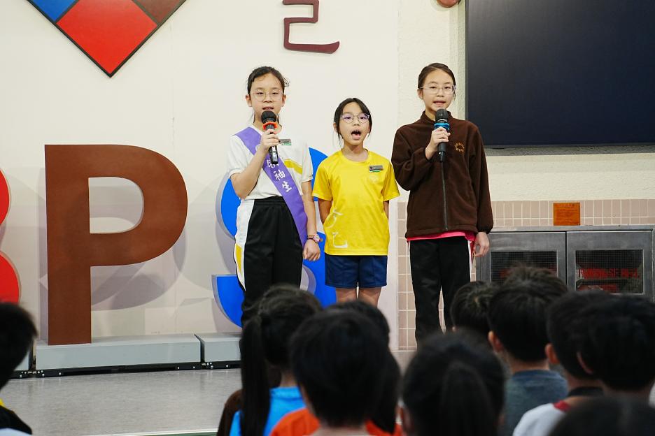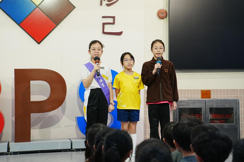 今天是英文早會,也是新年假期後的第一個早會。先祝大家新年快樂!身體健康!首先有英文科SPELLING BEE COMPETITION,獲獎同學分別來自二、三年級,他們在英文串字方面有出色的表演。接著是12-1月班際借書比賽頒獎,各班同學都努力借閱圖書,只要多借書、多閱讀,就能為班爭光,共享榮譽與獎品!午息齊齊讀活動開展了!放鬆的午息時間,大家可以到彩二一起輕鬆讀書。慢慢看、用心讀,快樂學知識,度過美好午息。最後是兩項頒獎,我校學生在2026全港幼稚園及小學積木機械人編程挑戰賽中得到金獎,以及在2026 「星輝盃」競技體操邀請賽取得佳績。