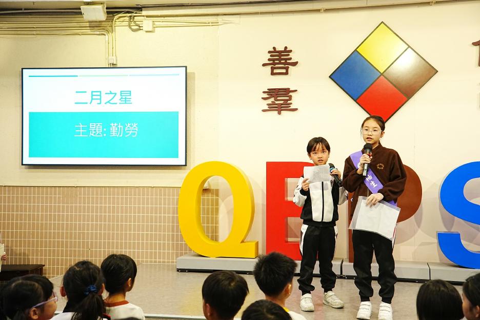 今天是英文早會。今天有一系列的頒獎,首先有英文科的Hong Kong Children & Youth Speech Competition的頒獎,接著是頒發每月之星(勤勞),欣賞得獎同學勇於承擔及勤奮向上的精神,並學會欣賞、尊重別人辛勞的付出。再來恭喜足球校隊在INFINITY五人足球挑戰賽2026小學組盃賽組得到好成績!最後是伊class獎勵計劃的宣傳。