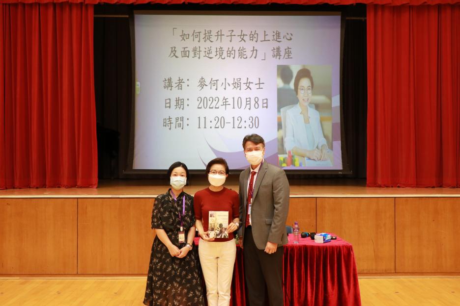 學校有幸邀請到「十優港姐」麥明詩媽媽——麥何小娟女士到校為我們分享「如何提升子女的上進心及面對逆境的能力」。