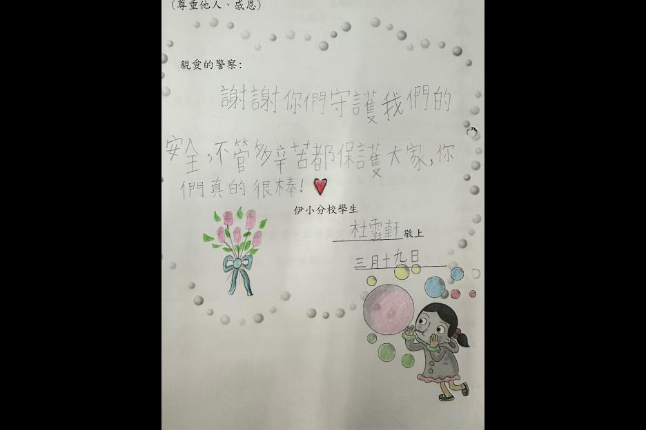 一年級同學在參觀期間表現投入,主動嘗試,更寫上感謝卡答謝警察們。