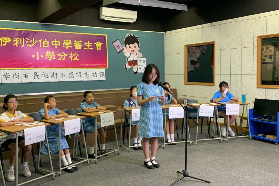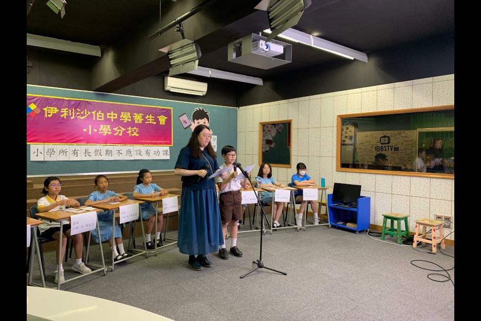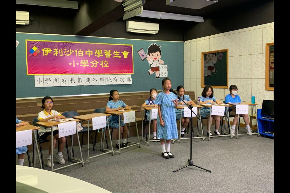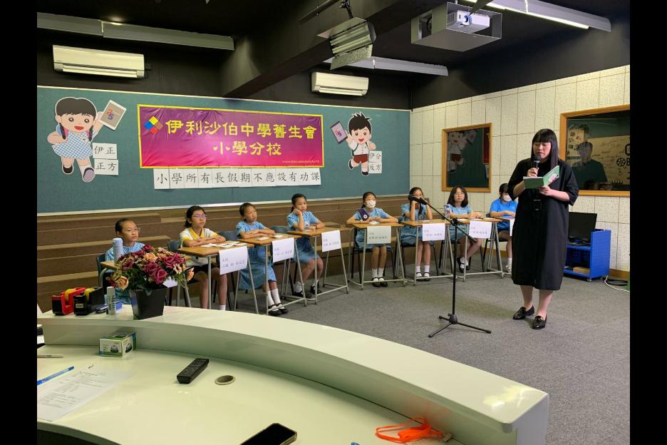 兩校就辯題「小學所有長假期不應設有功課」進行辯論交流,並由伊利沙伯中學舊生會湯國華中學馬美珍老師為學生作點評,增加兩校學生對辯論的認識。