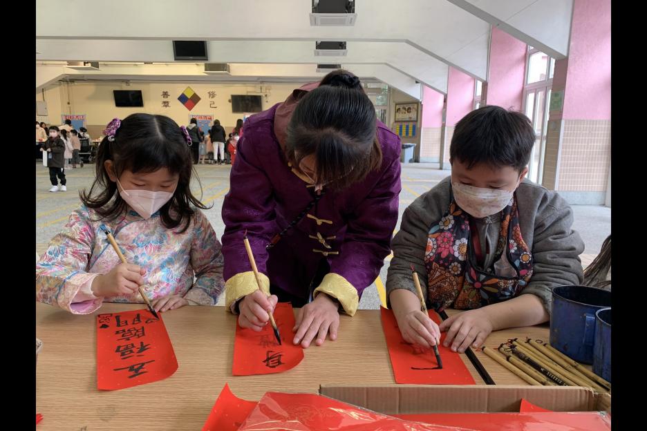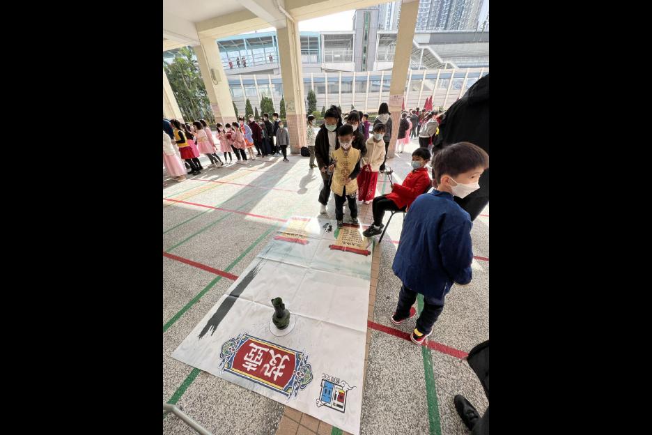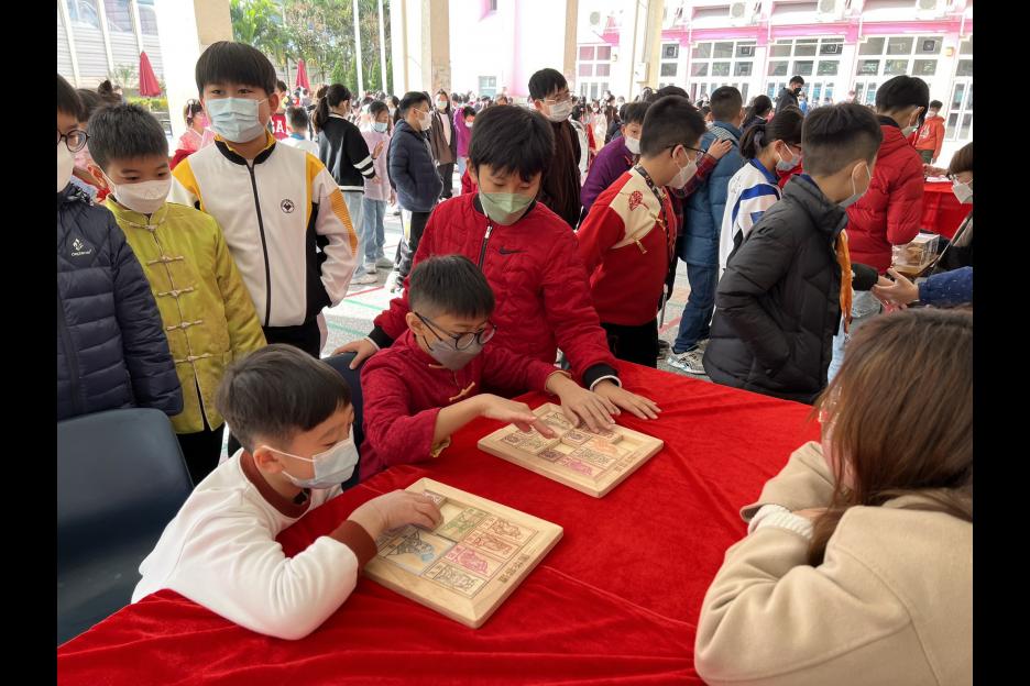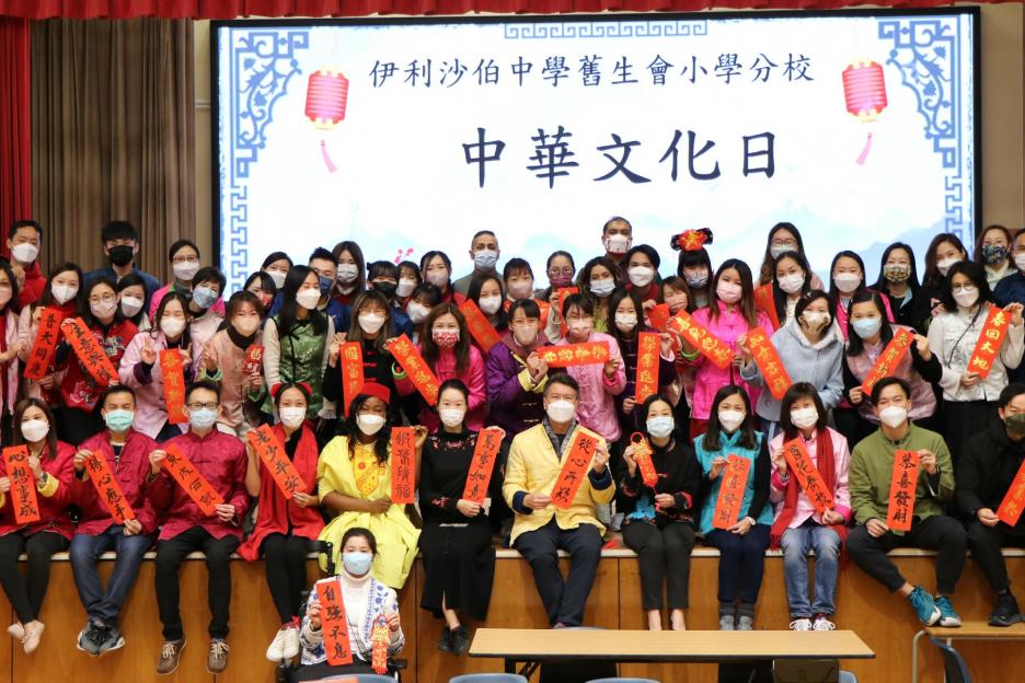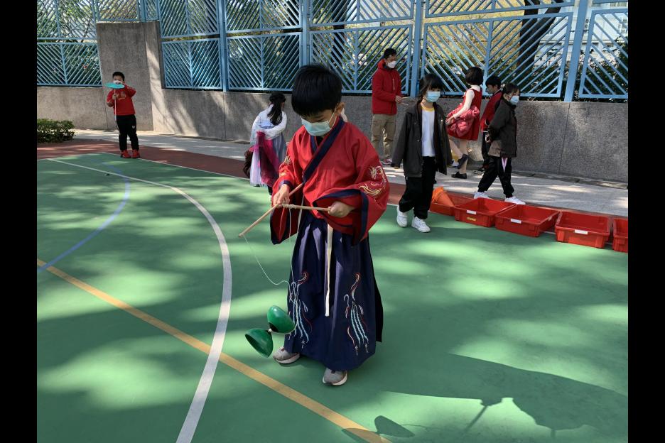 全體師生穿著華服參加中華文化日,當天有皮影戲表演、中華文化攤位等,讓同學在活動中認識中華文化。