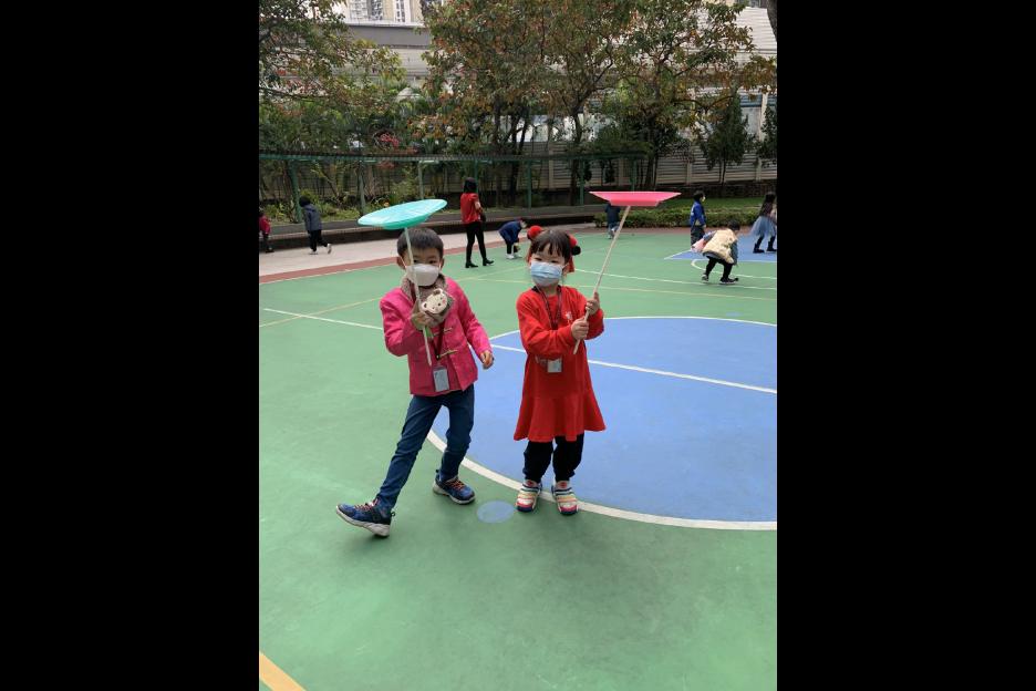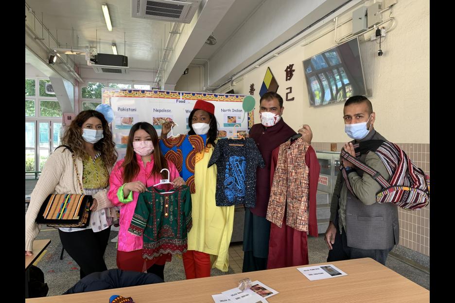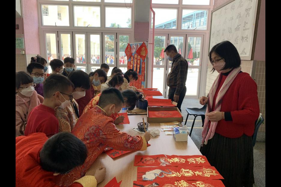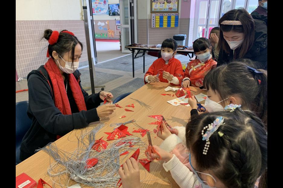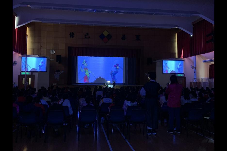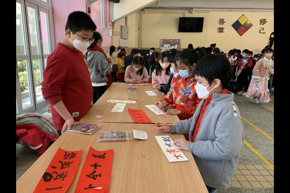 全體師生穿著華服參加中華文化日,當天有皮影戲表演、中華文化攤位等,讓同學在活動中認識中華文化。