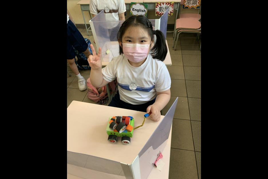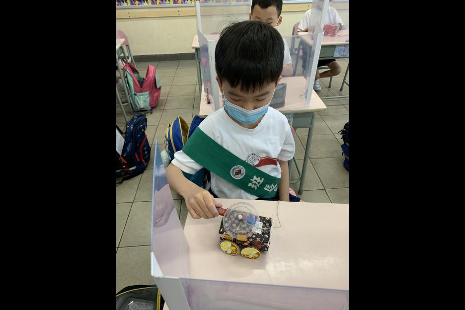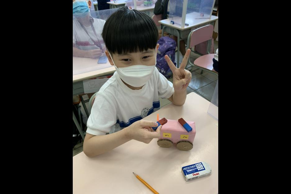 為配合二年級常識科單元《齊來玩玩具》,我們安排二年級全體同學化身成為「玩具設計師」,利用環保物料製作自己的玩具車,更在不觸碰玩具車的情況下,利用磁鐵移動車輛,從中學懂磁鐵的特性。 |