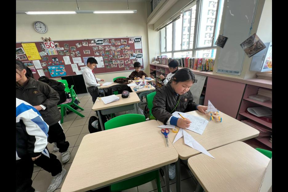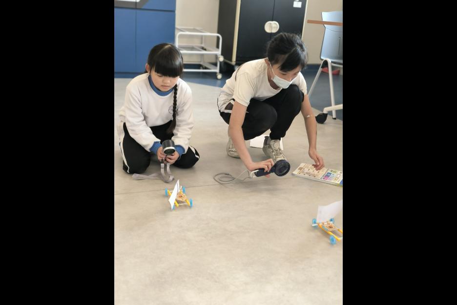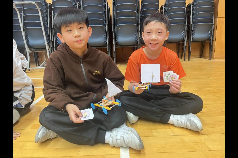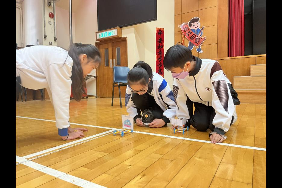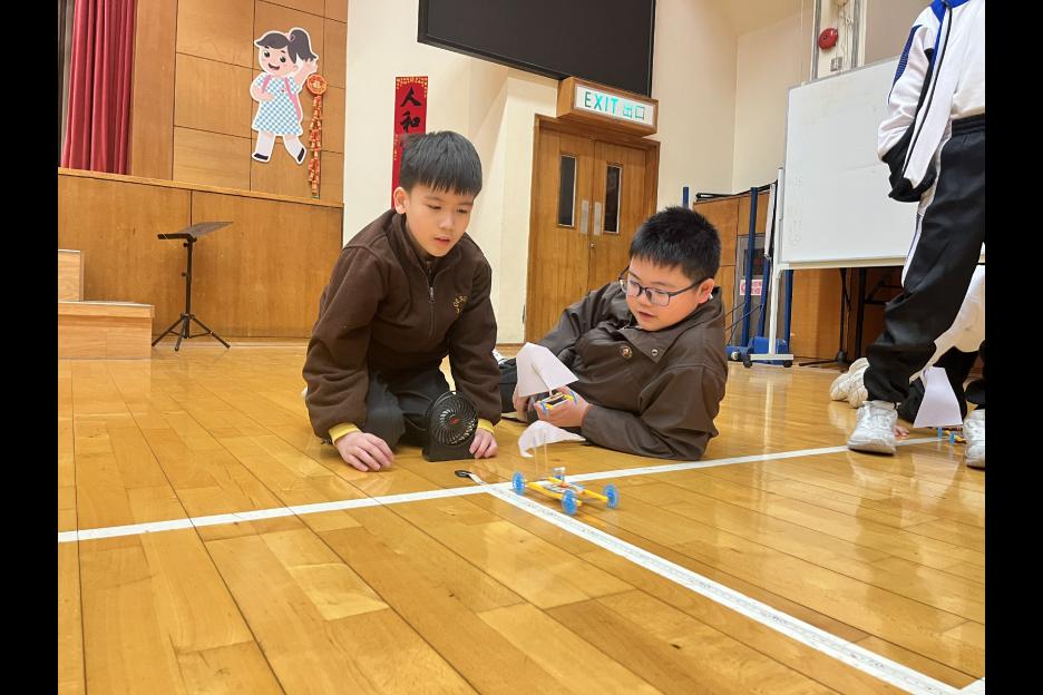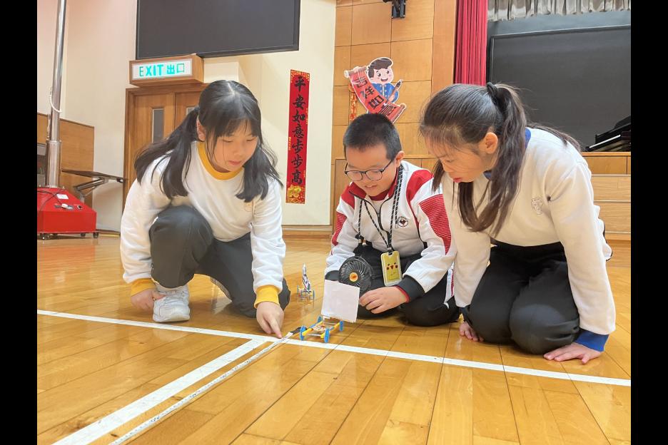 活動簡介 | 五年級同學進行跨學科的STEAM活動:「製作風帆車」,同學們運用「平面圖形」及「面積」的學科知識製作不同形狀及大小的風帆(包括三角形、平行四邊形及梯形),探究平面圖形與面積如何影響風帆車的前進距離,學生在製作及測試過程中,運用觀察、記錄、改良和分析數據的技能,能提升學生的邏輯思維、解難及溝通協作能力,同時培養學生認真及堅毅的態度。 |