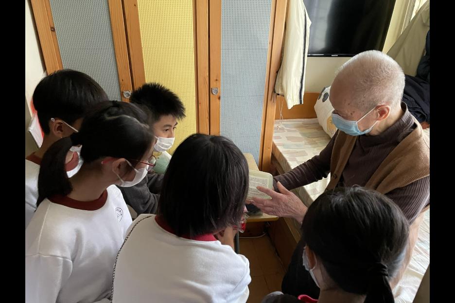 本校以修己善群為辦學宗旨,目標先修己,再善群。我們鼓勵學生關心社區有需要的人士,故今年五年級學生全級分階段探訪學校附近的獨居長者,給予他們一份關心。