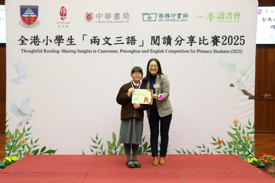 活動簡介 | 本校8位同學早前參加了由十八鄉鄉事委員會公益社中學主辦的全港小學生『兩文三語』閱讀分享比賽2025, 獲得優異成績。3位同學獲得優異獎,評判要在300多份參賽作品中每個組別揀出13份作品,同學能在比賽中獲得獎項,非常難得。 普通話組 6A 姚皓民獲得良好獎 6E鄭忻翹獲得優良獎 5B蕭彦淇獲得優異獎 5E李玥怡獲得優異獎 在粵語組 5A余芷晴 獲得良好獎 5D王浚錡獲得良好獎 6D鄧捷維獲得良好獎 5E陳恩以獲得優異獎 |