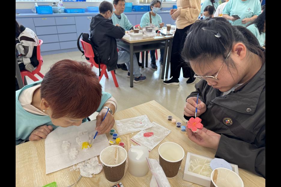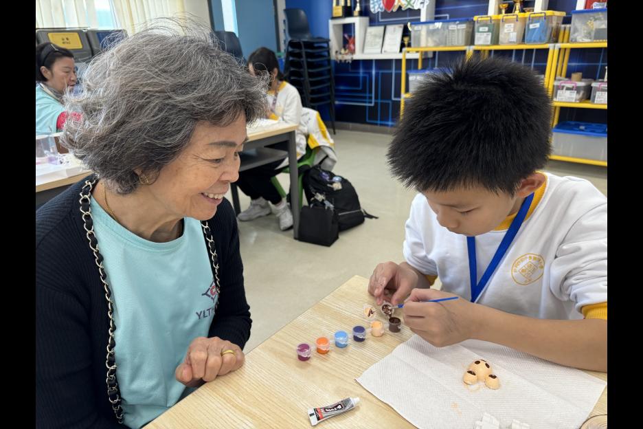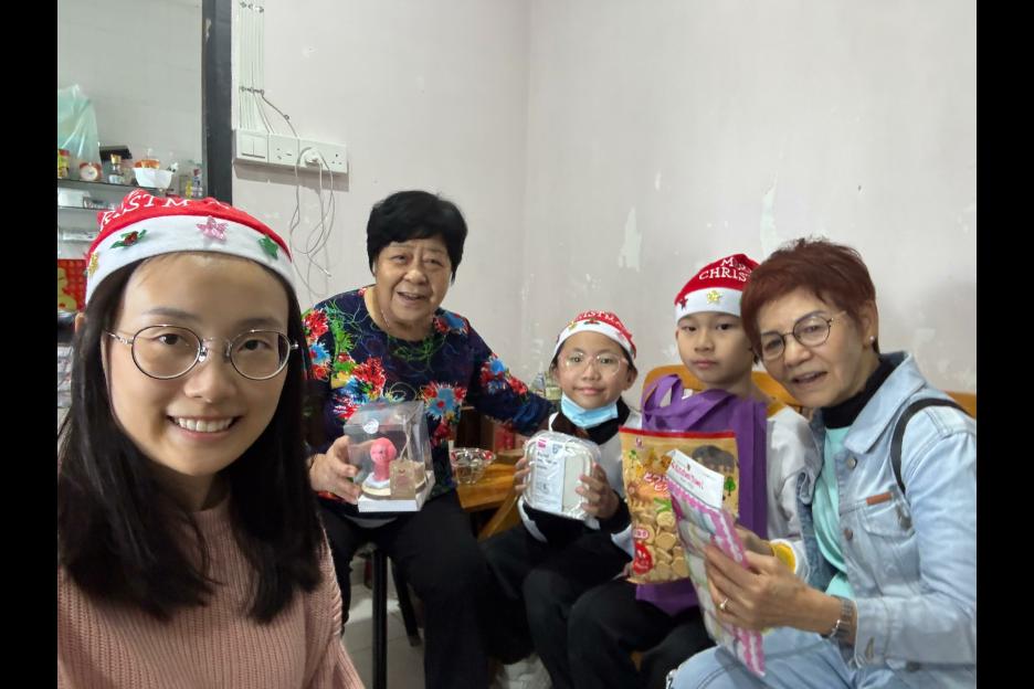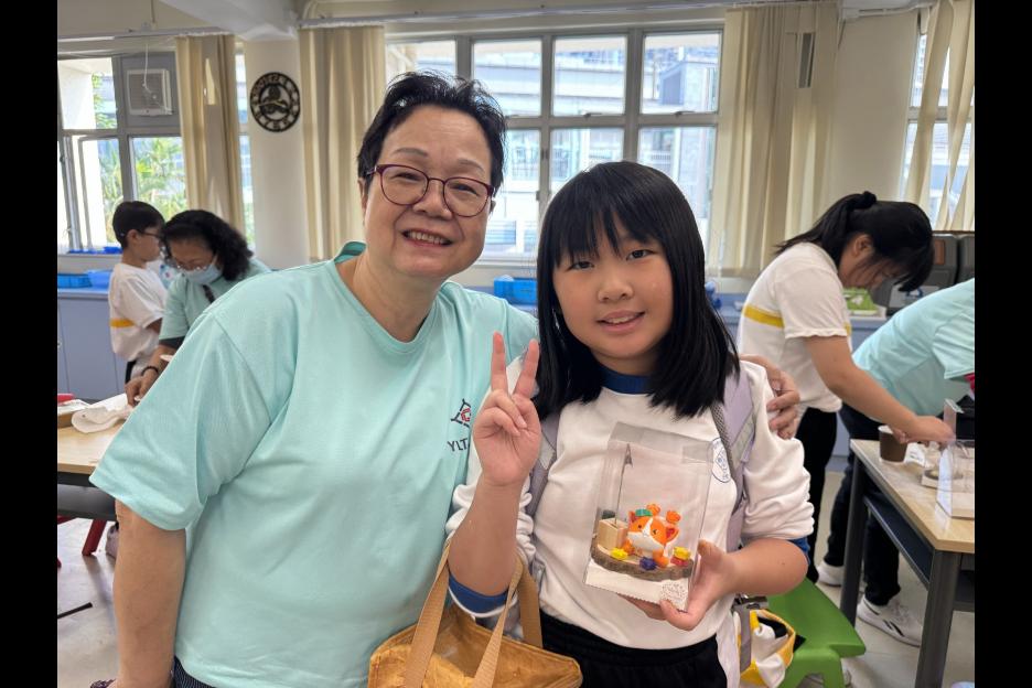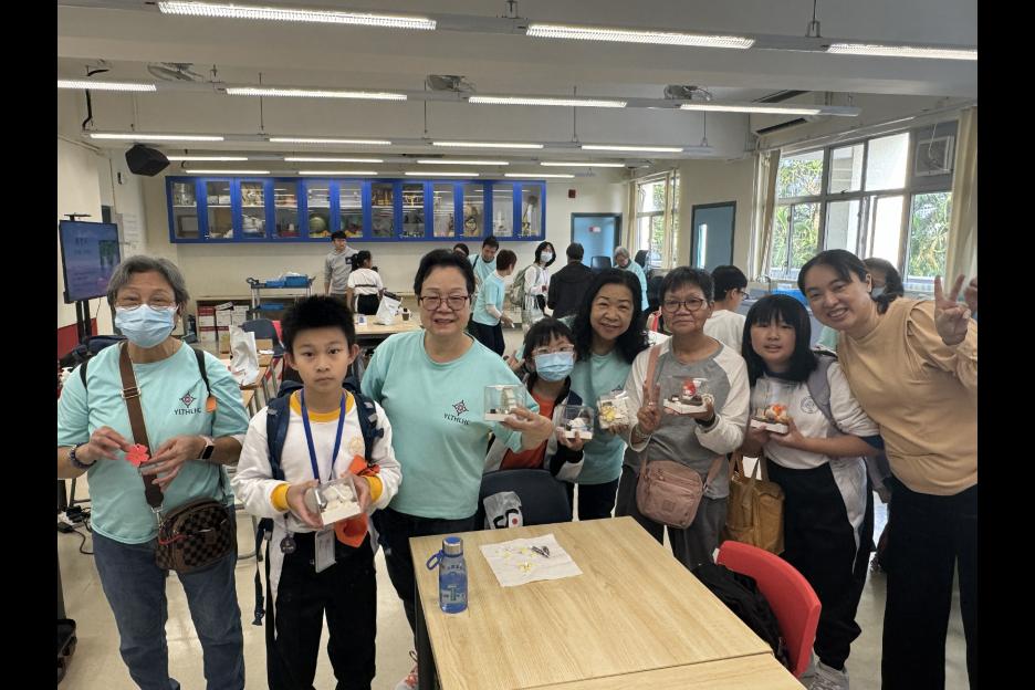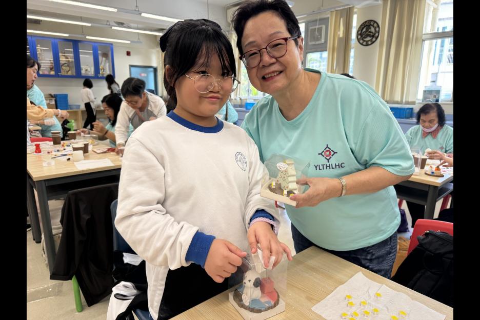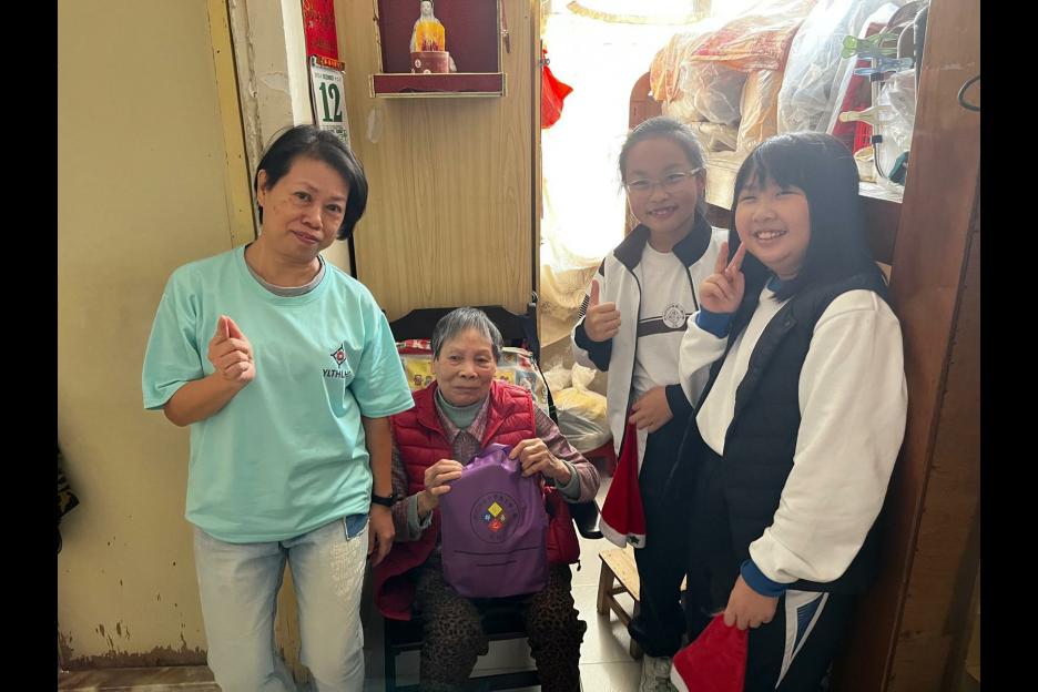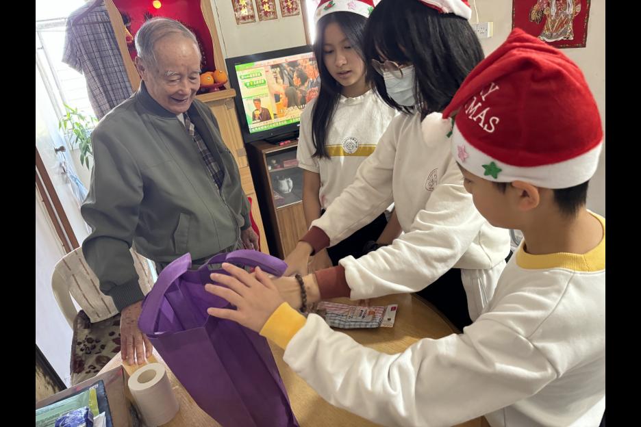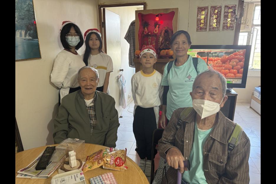 本校公益少年團成員與長者義工一同製作擴香石,過程中他們互相溝通合作,促進長幼共融。其後同學與長者義工一同探訪天耀邨的獨居長者,慰問送暖,並與長者提早歡度聖誕節。