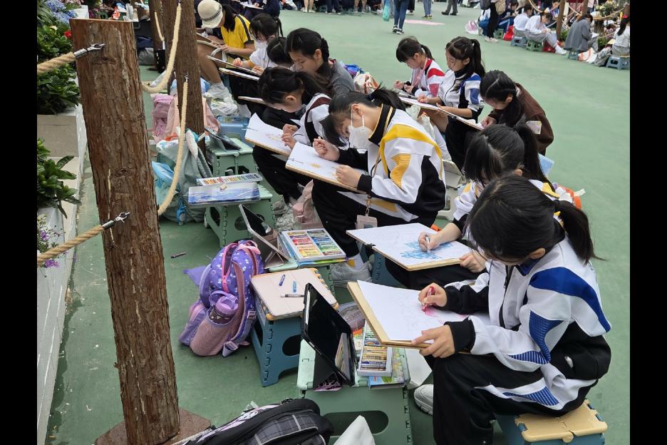 活動簡介 | 10位具藝術潛能的學生到香港維多利亞公園參加花卉展覽「賽馬會學生繪畫比賽」。過程中,同學透過細心觀察,繪畫出造型優美的盆栽、花藝擺設及色彩繽紛的園景設計,藉此提升同學即場速寫與藝術創作能力,以及提高同學對愛護植物和自然環境的意識。同學都用心繪畫,表現十分投入呢! |