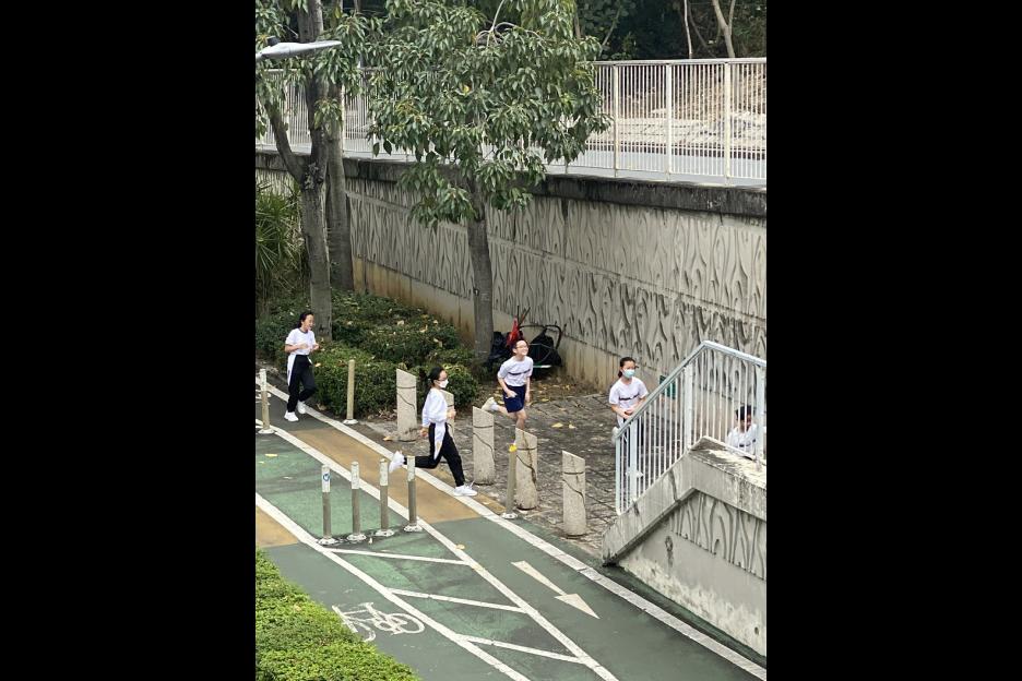 讓隊員在圓玄學院妙法寺內明陳呂重德紀念中學22-23長跑邀請賽參與長跑比賽。