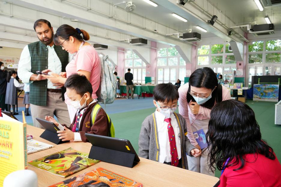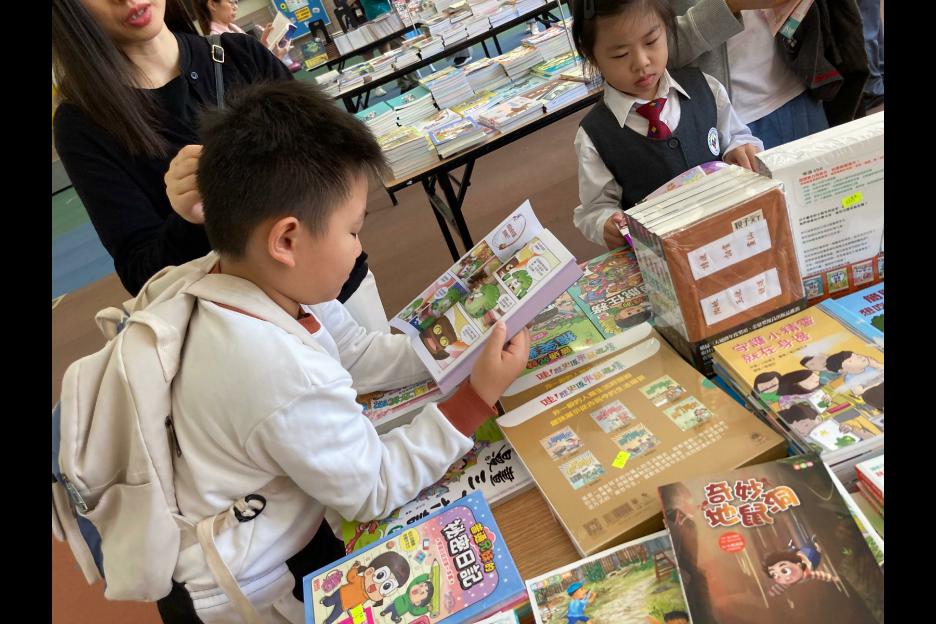 為了推動校園的閱讀文化,學校邀請了三間參展商到校舉行書展,提供大量優質中文和英文讀本供師生和家長選讀。另外,外籍老師更設計了有趣的遊戲攤位,讓同學寓遊戲於學習,提升閱讀的趣味。