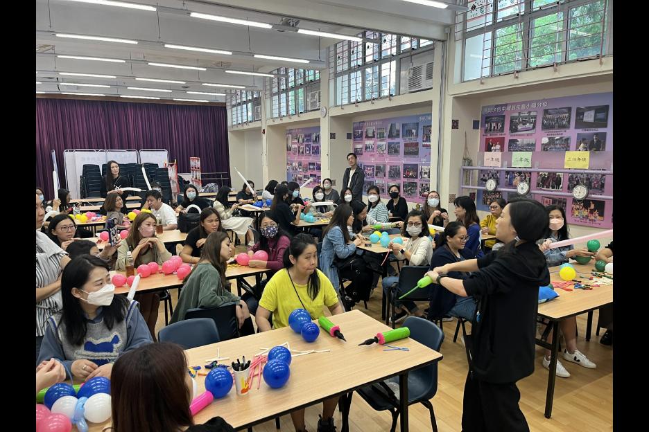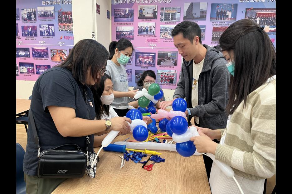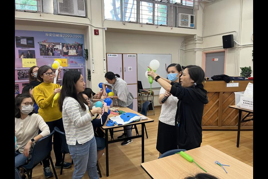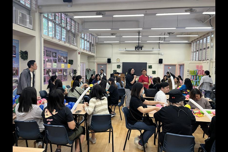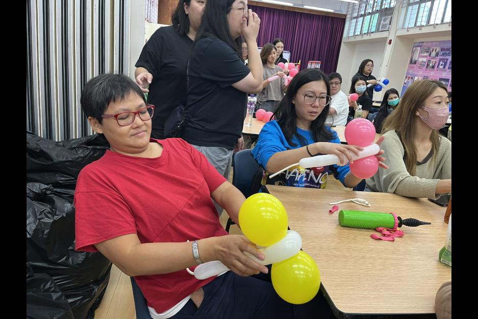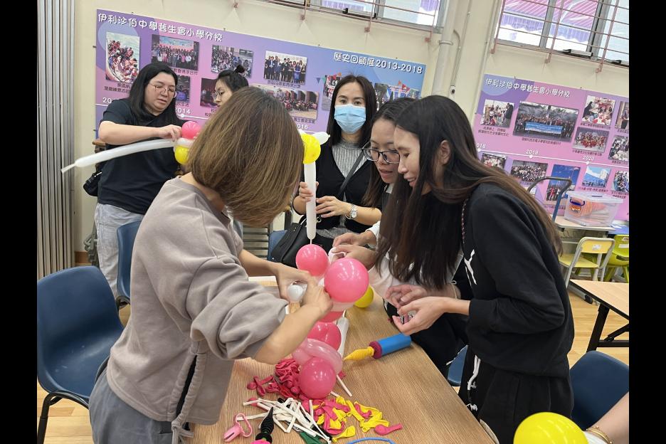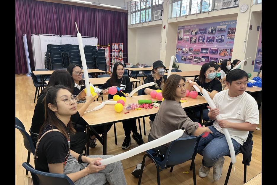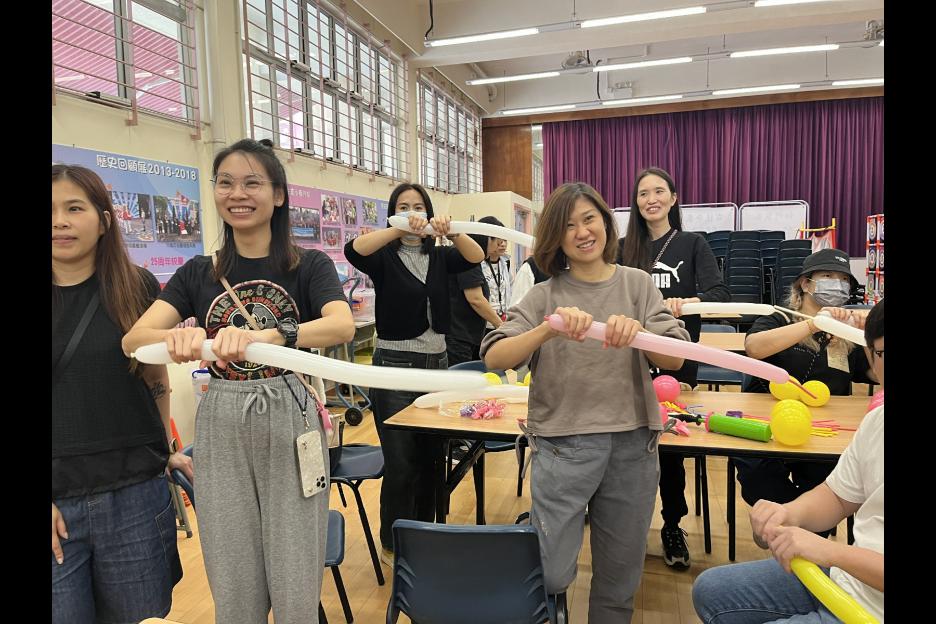 家長義工一起學習扭氣球,為同學預備滿滿愛心的聖誕禮物。