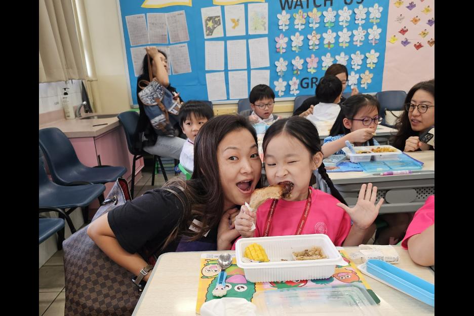 小一家長到校體驗孩子們的學校生活,瞭解他們在校內午膳、午膳小息及英語課堂的學習情況。