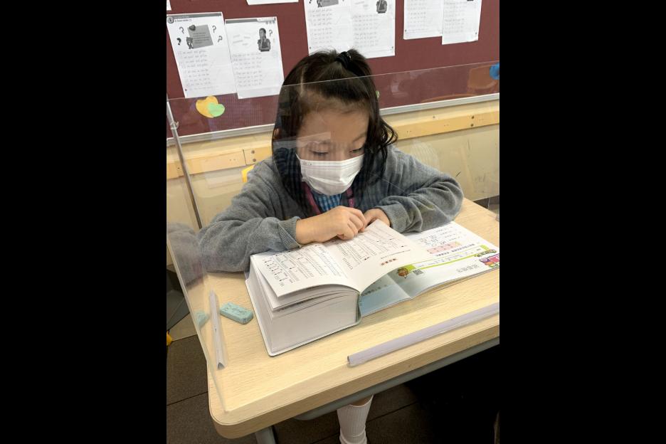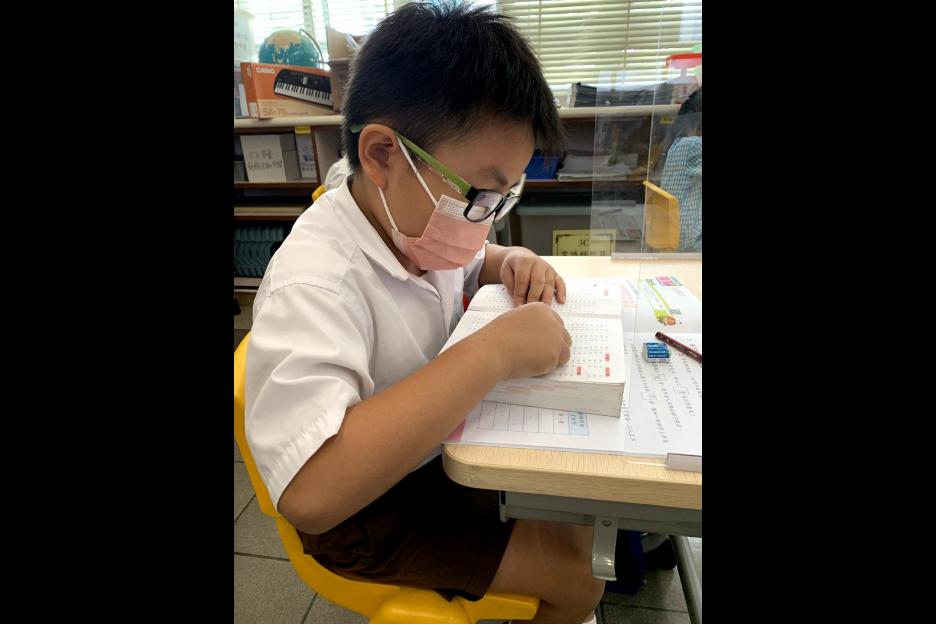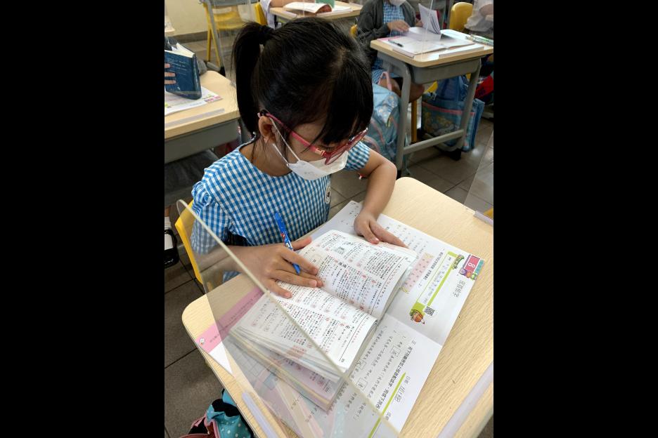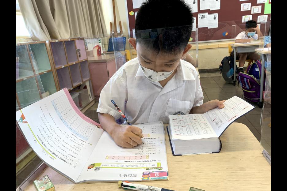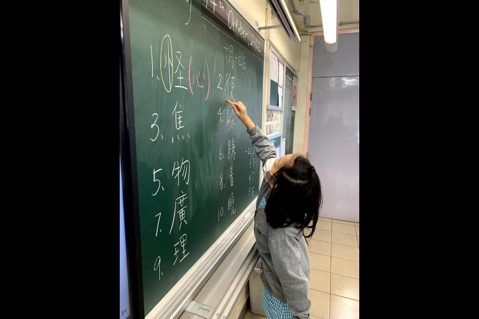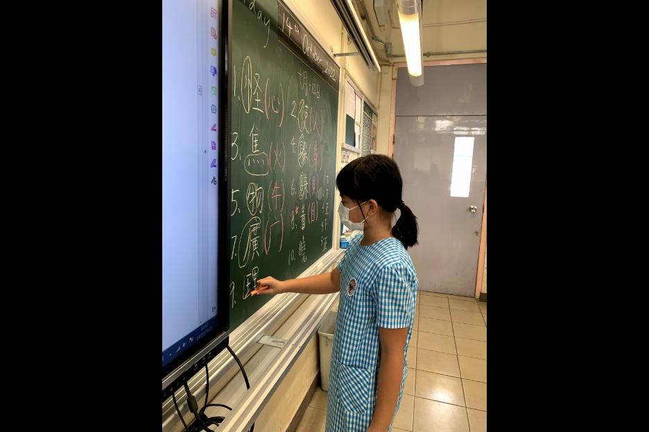 在中文科課堂上,老師教授學生查字典的方法。學生十分投入搜尋漢字的部首。
