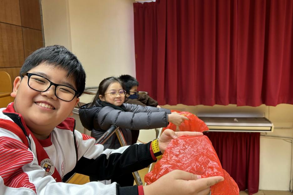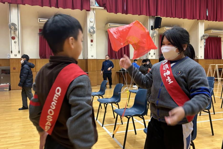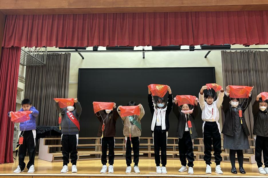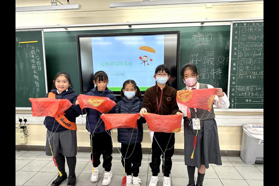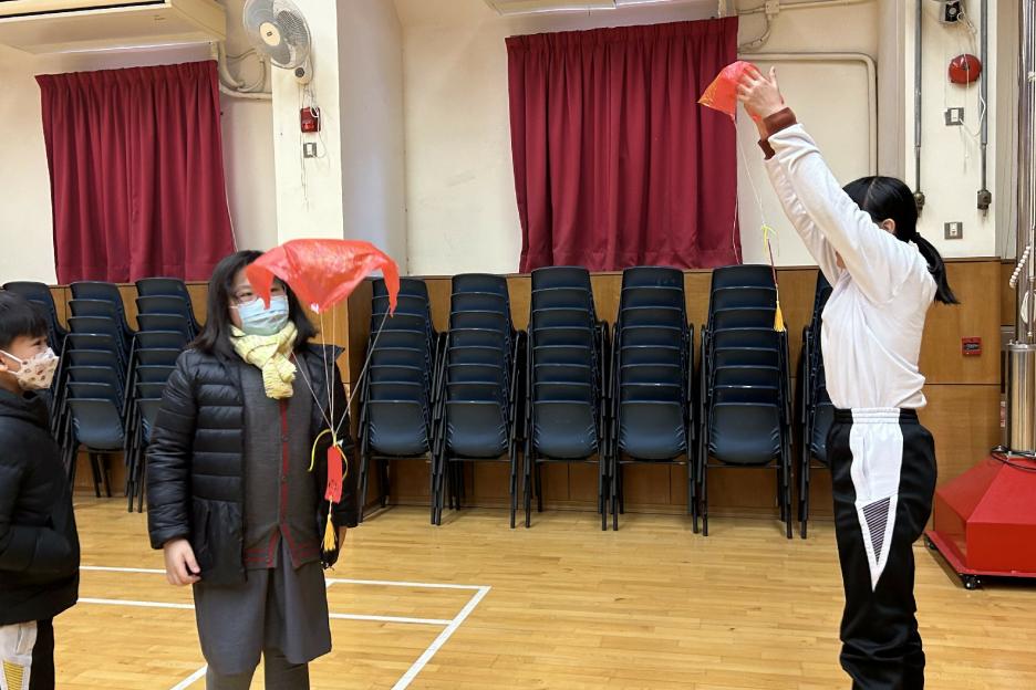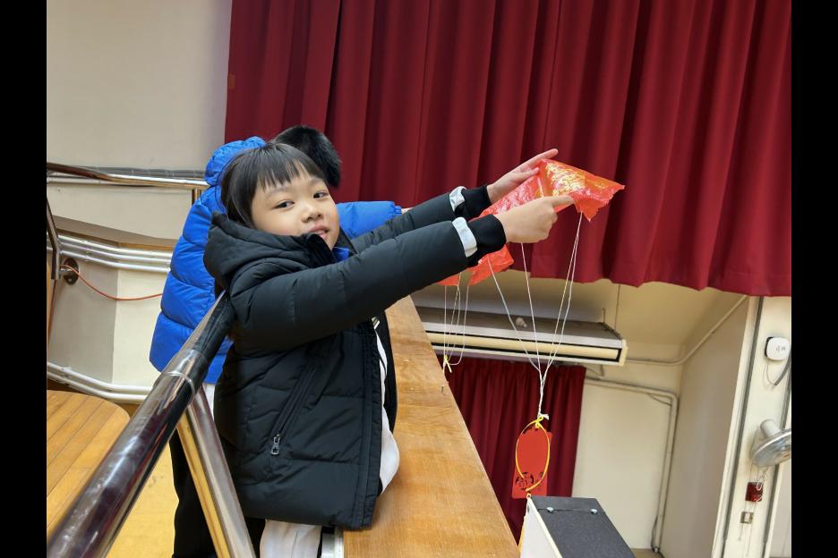 同學以農曆新年為主題,結合科學原理和數學知識,製作出可在空中停最久的降落傘。完成作品後,同學們還有機會參加全級比賽,競逐「空中停留最久獎」和「空中停留5秒獎」,比賽當天,同學表現投入,氣氛熱烈。