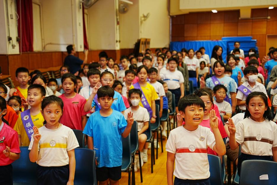 9月29日是十四隊服務團隊的就職儀式,校長以「感恩為我們服務的人」為主題,勉勵各位要在學校崗位上、在日常生活中、在言行舉止都好好準備,為同學建立良好和專業的榜樣,也要學會照顧身邊的親人、朋友、鄰里、社區等,成為良好子女和公民,熱心服務社區。