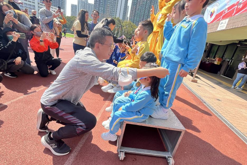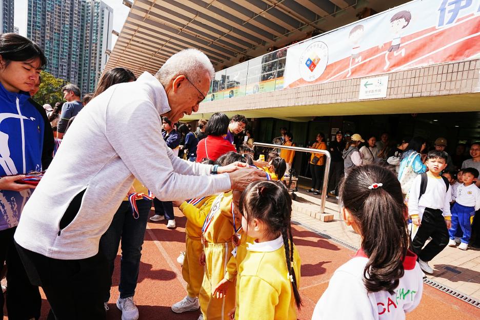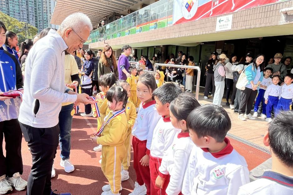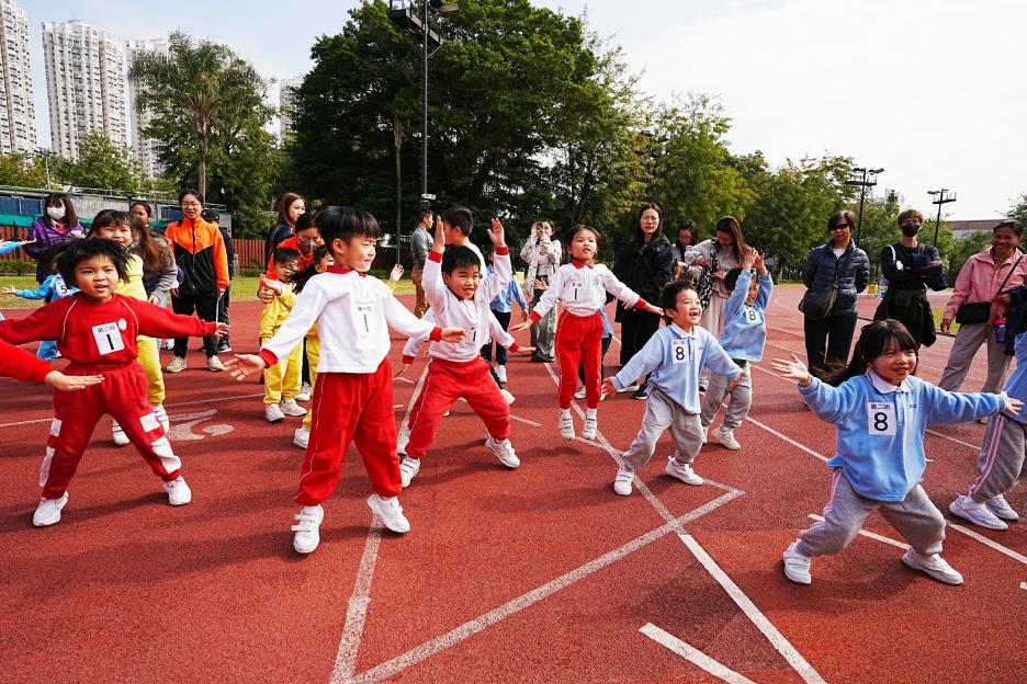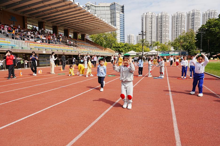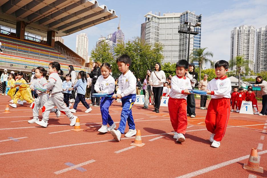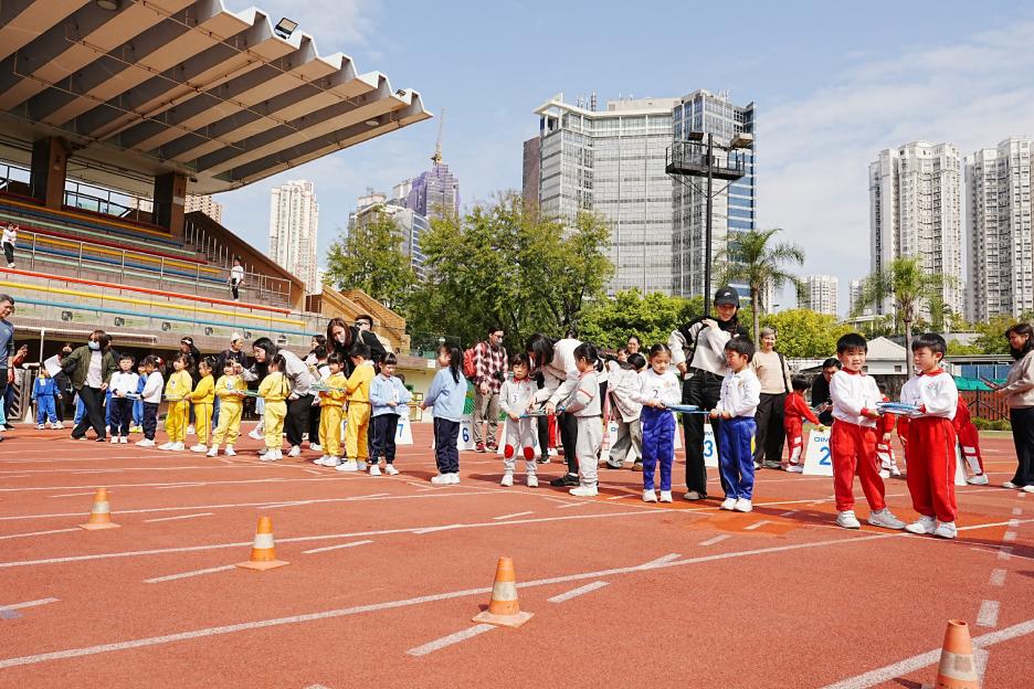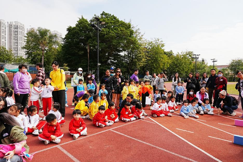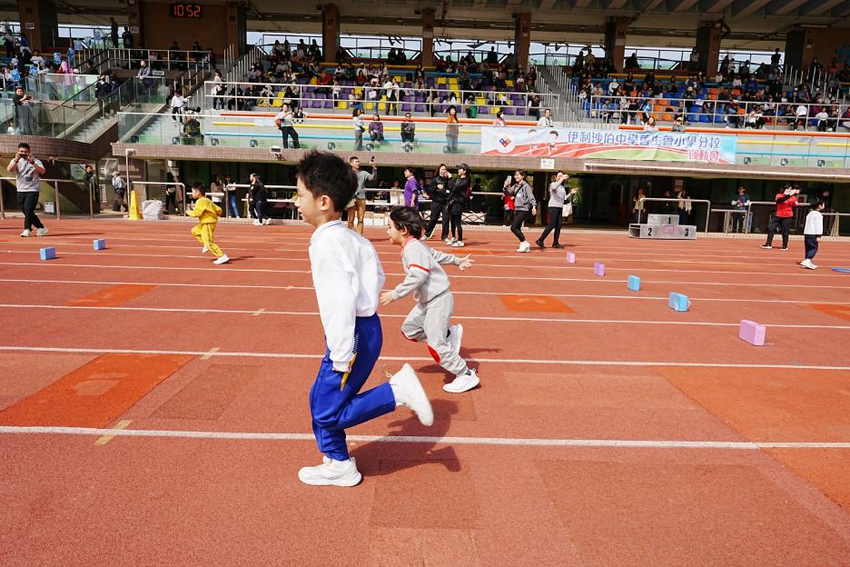 本年度校運會邀請了16間同區幼稚園到場參加競技接力賽,幼稚園同學身手敏捷,充滿活力,伊分各社同學也為他們打氣,現場氣氛十分熱烈!