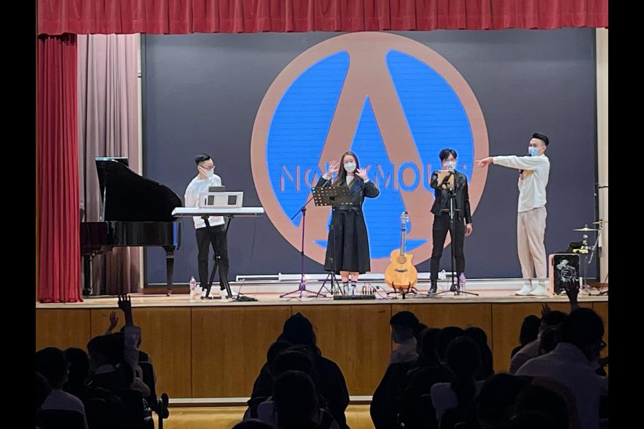 透過觀賞校外流行曲樂隊演唱歌曲及分享夾BAND經歷,讓學生明白成功須苦幹,並以正向心態對待事。