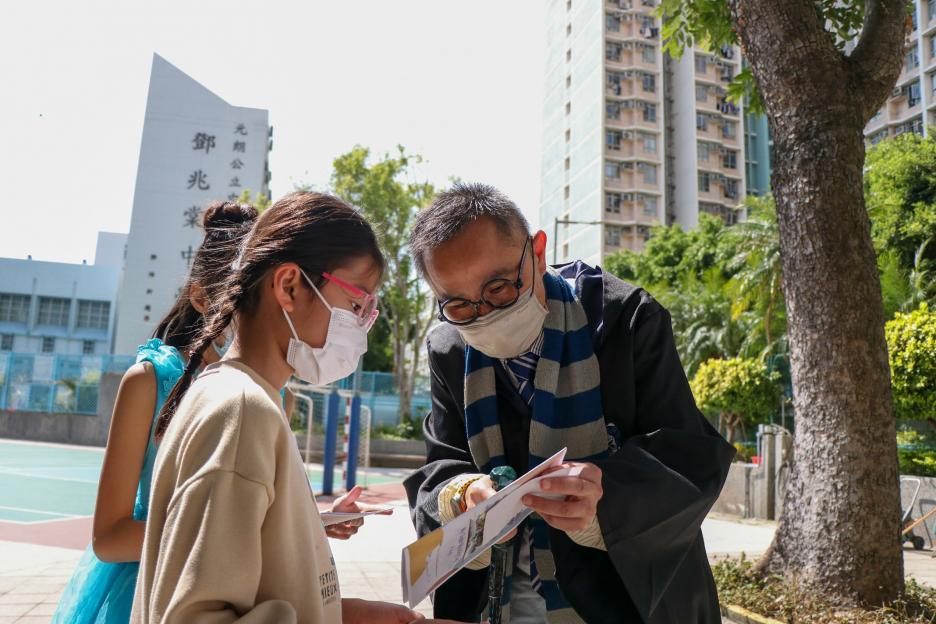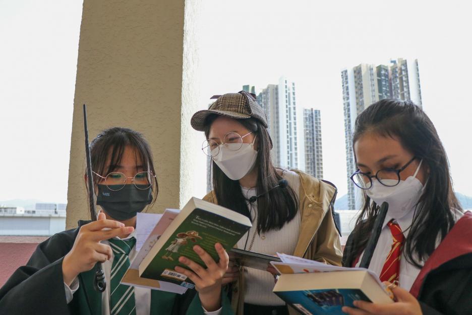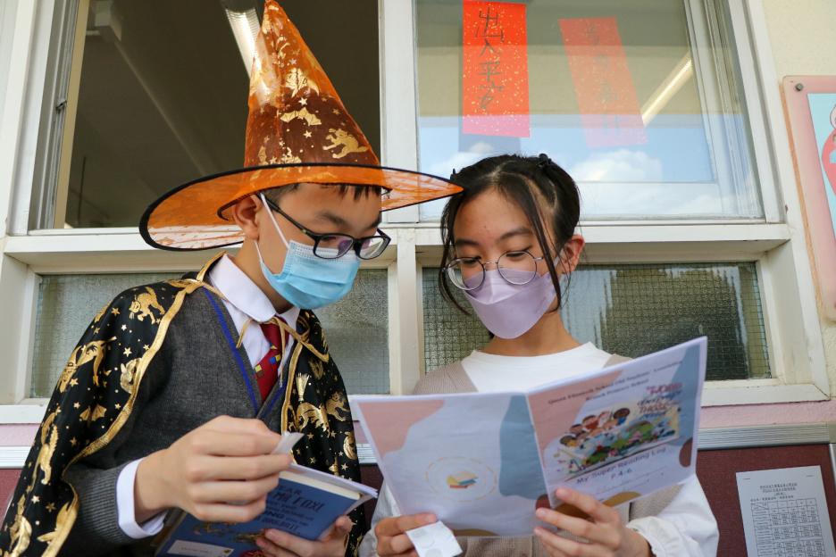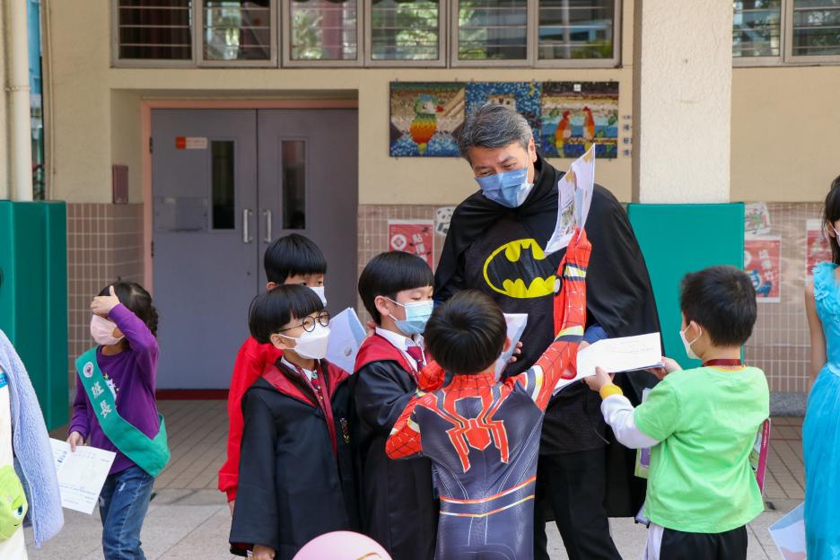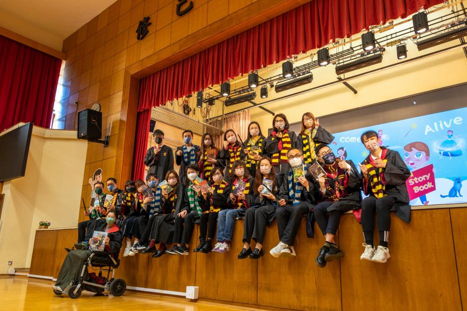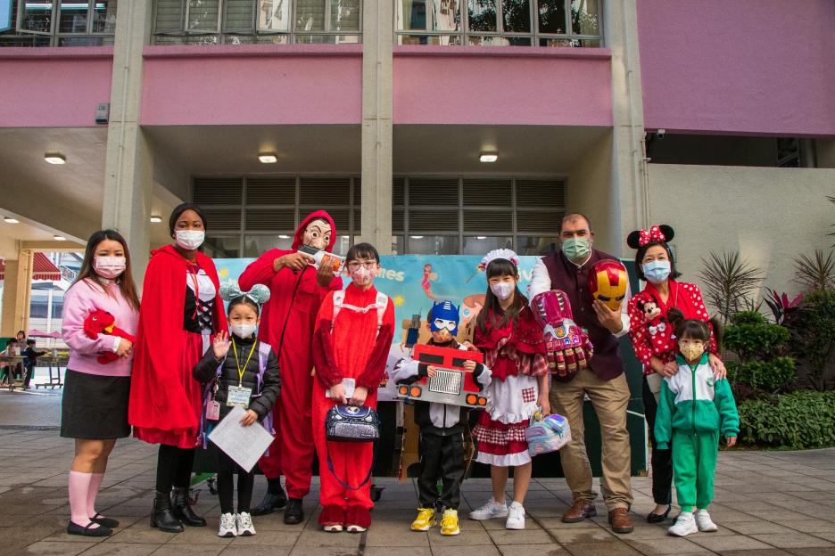 同學透過Cosplay(角色扮演)方式活現英文書中人物,學生和老師以英語互相分享圖書內容,一起享受閱讀的樂趣;並安排家長到校觀賞巡遊片段,攜手營造閱讀氛圍。