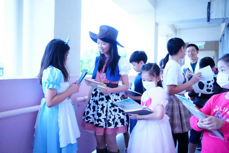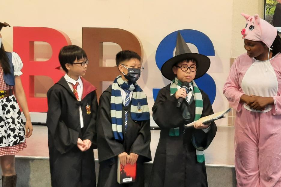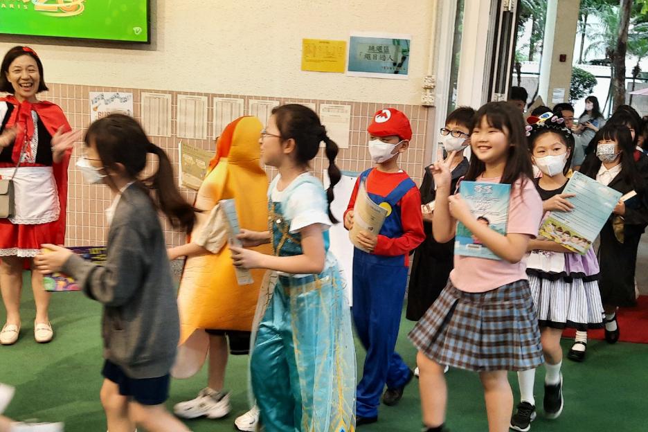 活動簡介 (不多於50字) | 早上,由學生和家長向同學介紹「世界閱讀日」的由來、不同國家和城市的慶祝活動。然後,全校學生分成兩組欣賞互動英語話劇。下午,同學透過Cosplay(角色扮演)方式活現英文書中人物,學生和老師以英語互相分享圖書內容,一起享受閱讀的樂趣,並安排家長到校觀賞巡遊片段,攜手營造閱讀氛圍。 |