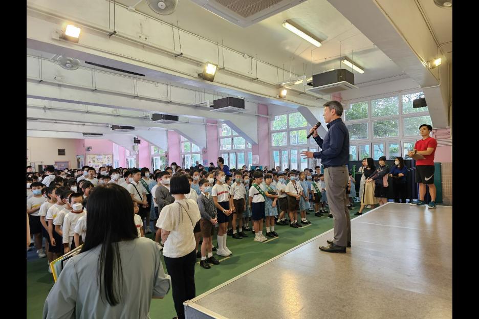 學生表演鎮定、迅速到達操場,聆聽老師及校長的提點及分享。