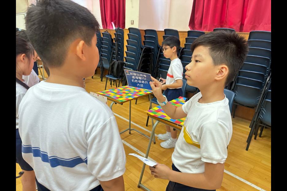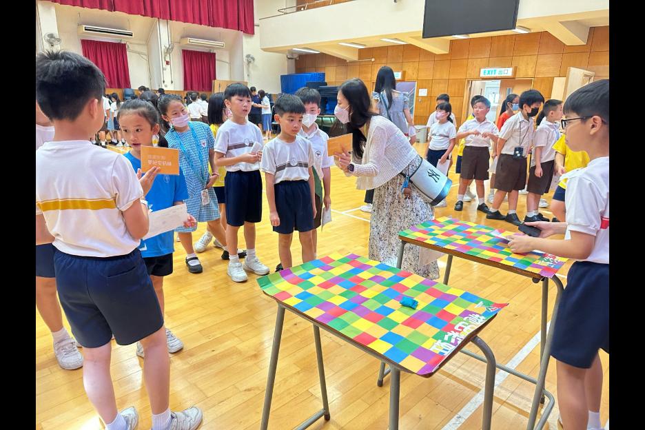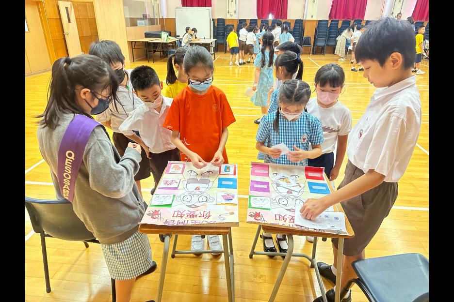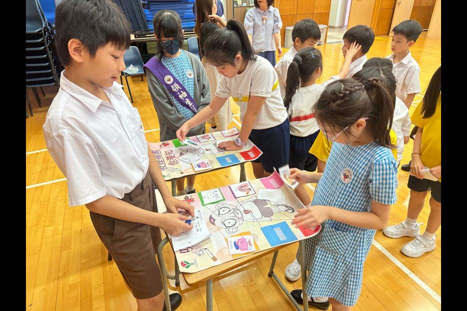本校誠邀「社區藥物教育輔導會」到校與學生進行健康生活嘉年華遊戲攤位活動,讓學生透過互動遊戲中學習正確的健康生活知識。我們更邀請五年級的同學作為小助手,協助低年級學生進行遊戲,達致互相幫助,互相學習。