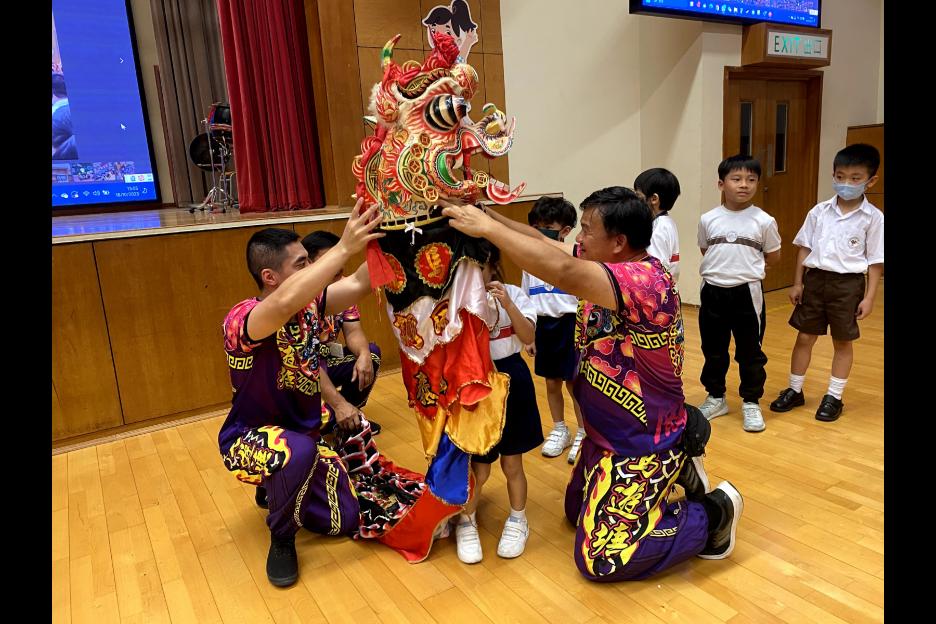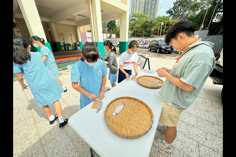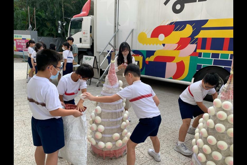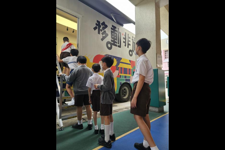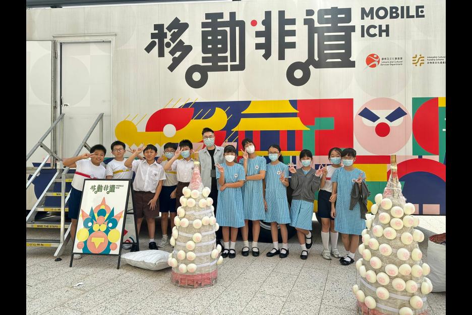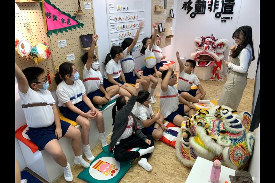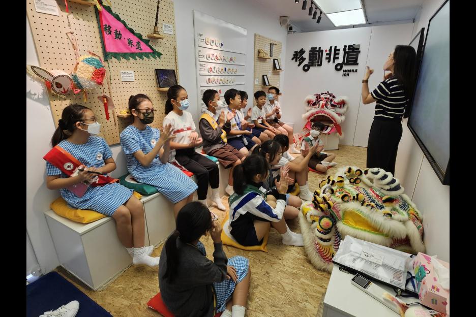 移動非遺專車停泊在學校花園區, 為同學介紹有關非遺的內容, 更有手工藝、戲劇等的活動, 以生動、有趣的形式讓同學了解非遺。