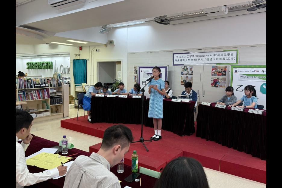 活動簡介 | 舌劍特工成員與友校對手就辯題「生成式人工智能(Generative AI) 對小學生學習帶來挑戰大於機遇」展開了連番唇槍舌劍,最終由本校成功勝出了這場賽事,並由5E梁冰琋同學奪得最佳辯論員。在本次「耀道盃」辯論邀請賽中,舌劍特工成員亦得到了分區亞軍的成績。 |