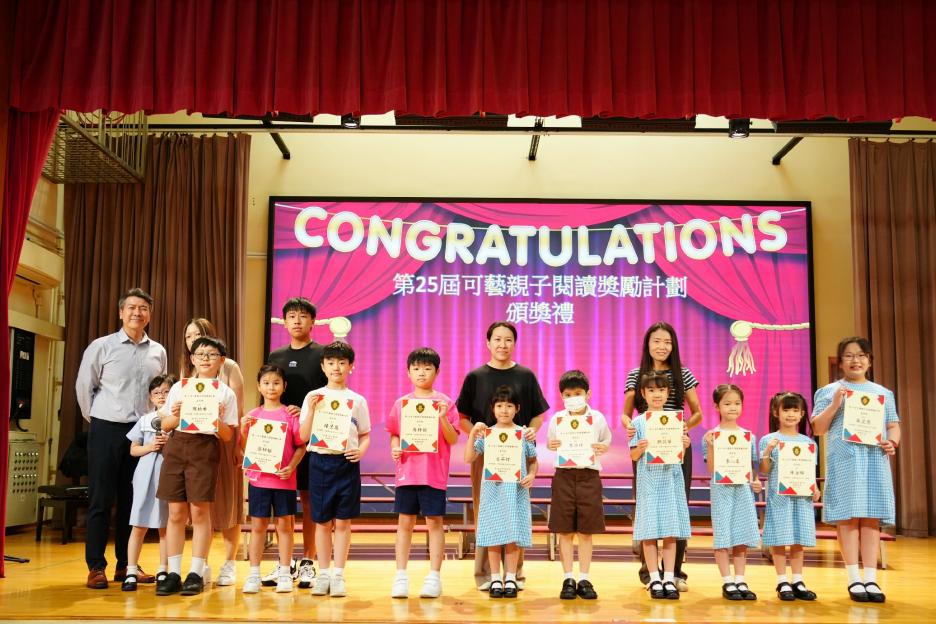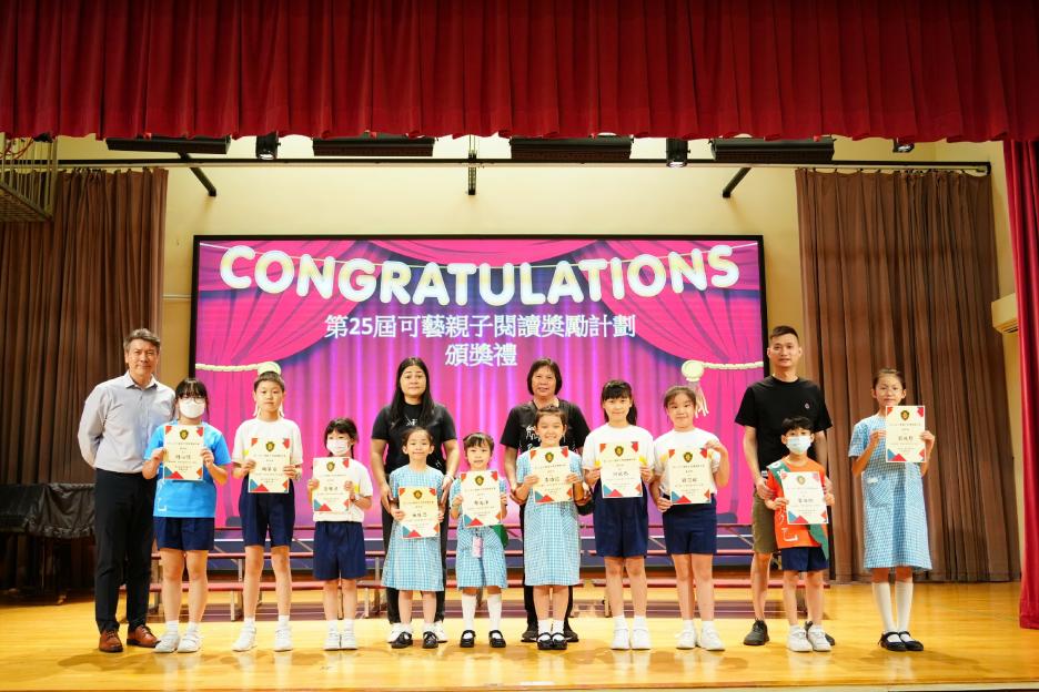 為了推廣親子閱讀與寫作風氣,鼓勵父母與子女一起閱讀及分享,本校安排了學生參與由嗇色園主辦可藝中學舉辦的「第25屆可藝親子閱讀獎勵計劃」。學生表現優異,共有3位學生獲得最佳讀者奬,並有129位學生獲得優異嘉許奬。