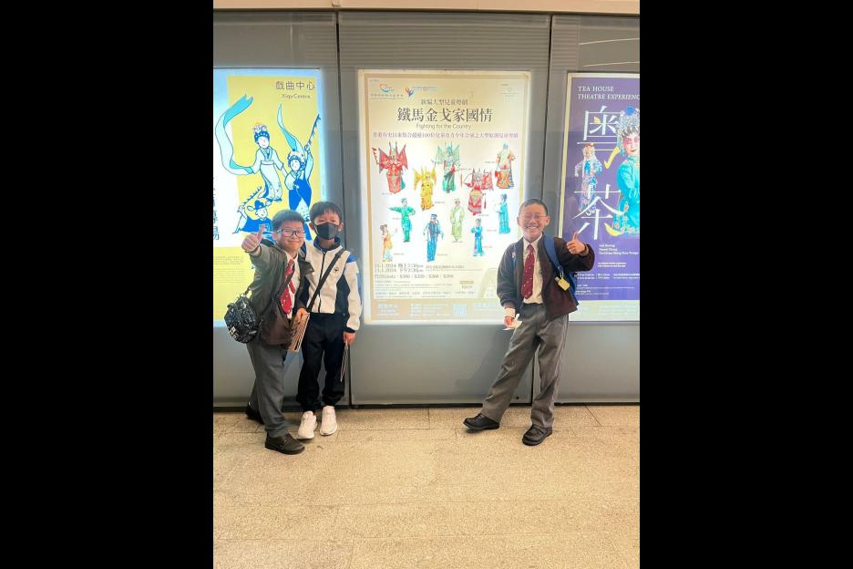 劉婉玲老師和劉嘉敏老師帶領30多位同學到西九戲曲中心大劇院欣賞由鄧振鋒同學有份主演的大型兒童粵劇「鐵馬金戈家國情」,同學們十分專注觀賞同學精彩的演出,同時學習愛國愛家和尊敬師長的價值觀。