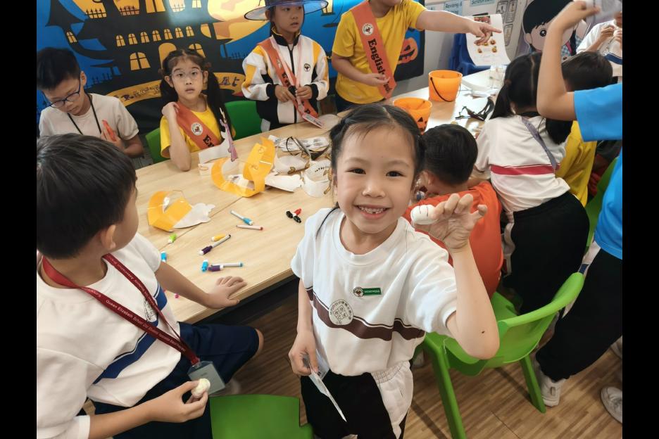 星期五的壓軸活動中,大家根據Epic英文圖書的食譜製作了小點心,挑戰膽量小遊戲和神秘鬼屋體驗,成功闖關的同學還獲得了限量的「伊分萬聖節特別版鎖匙扣」。