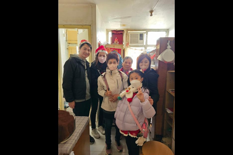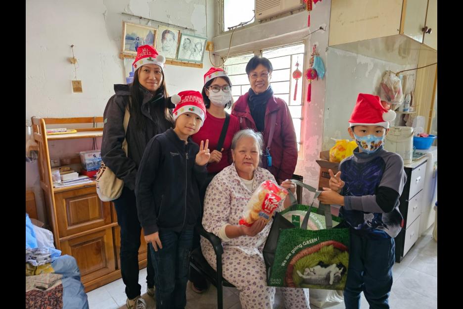 親子義工隊成員探訪區內獨居長者,了解及慰問他們的日常生活。