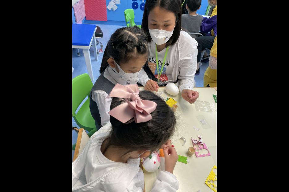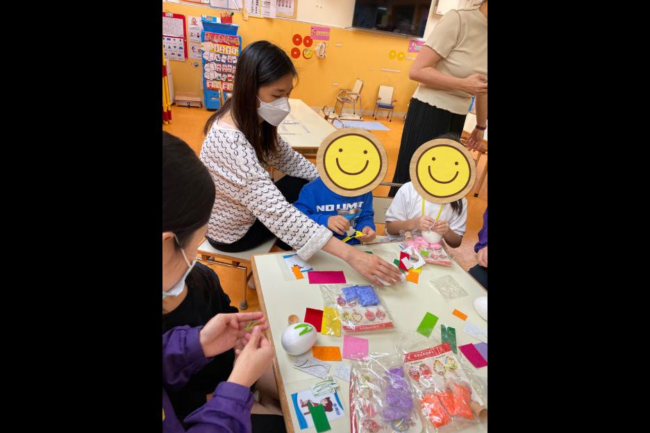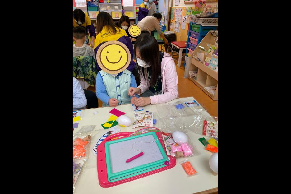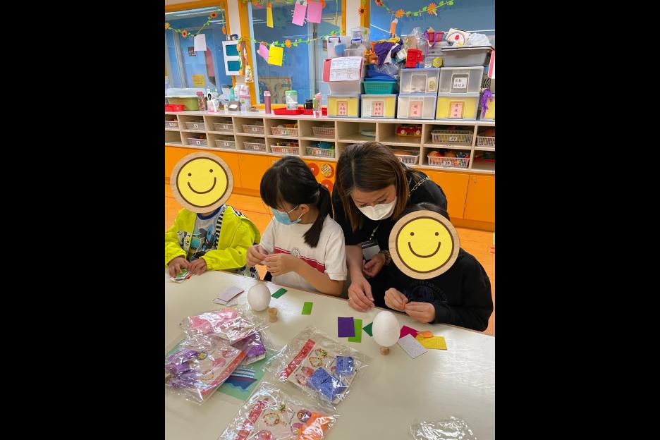 親子義工隊到訪特殊幼兒中心,與中心學童一同玩遊戲及做手工,開心迎接復活節!