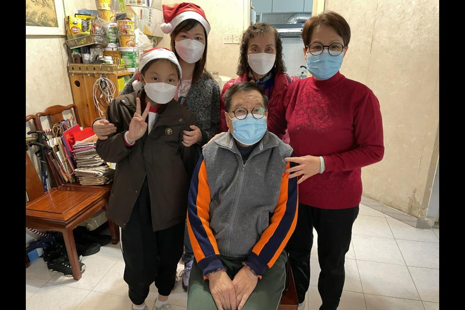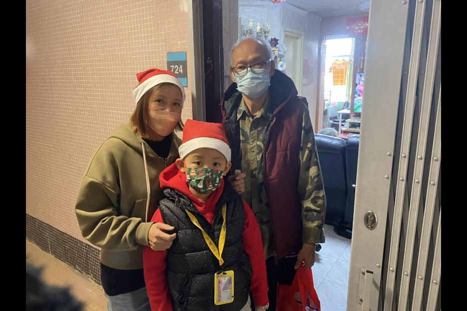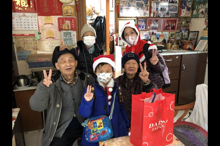 在普天同慶的日子,一班親子義工帶著禮物探訪獨居長者,希望帶給他們溫暖。