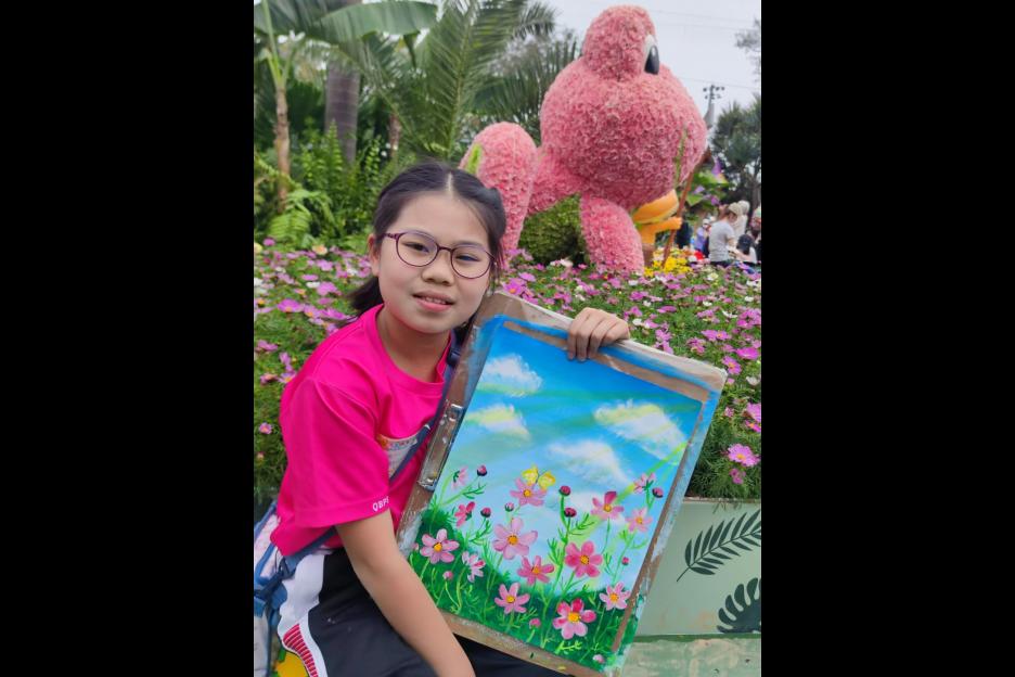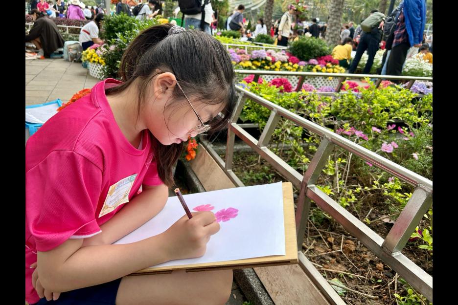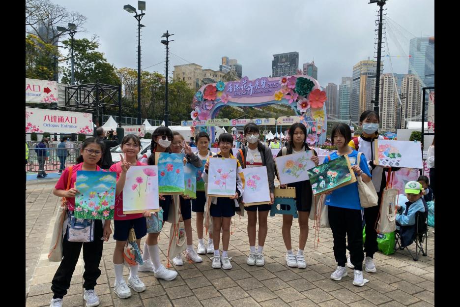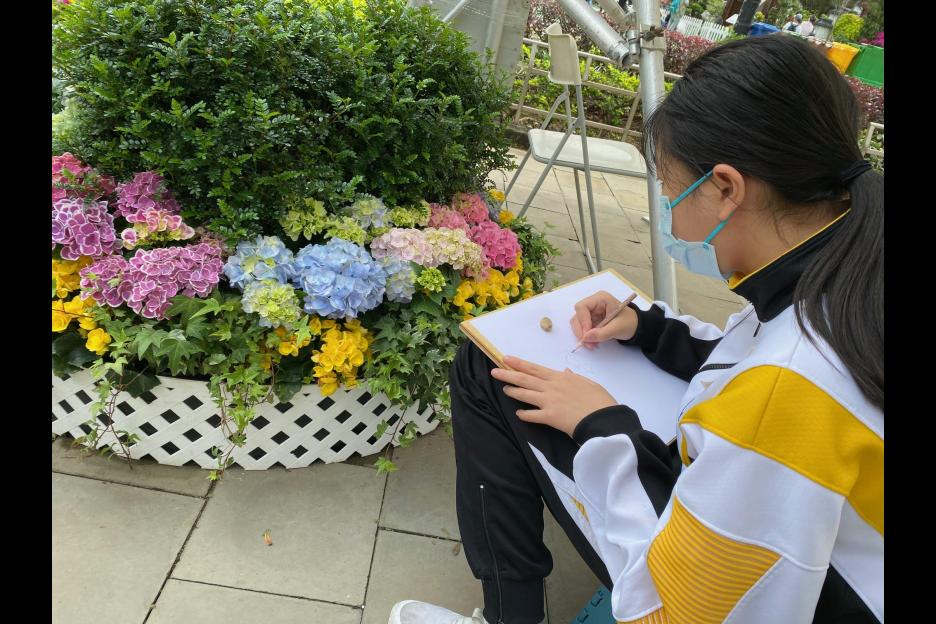 本校10位視藝尖子,代表參與由香港花卉展覽2025舉辦的賽馬會學童繪畫比賽,同學們在花卉展中寫生,全神貫注,