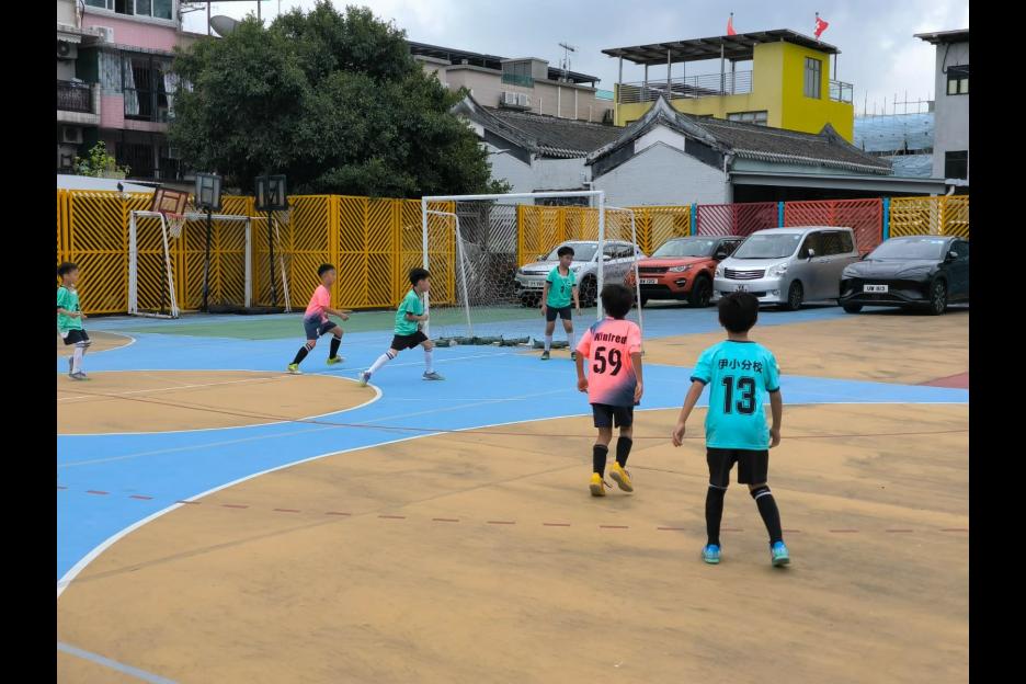 本校的足球隊員們與通德學校進行了友誼賽,讓低年級隊員有機會體驗五人足球比賽的感受。