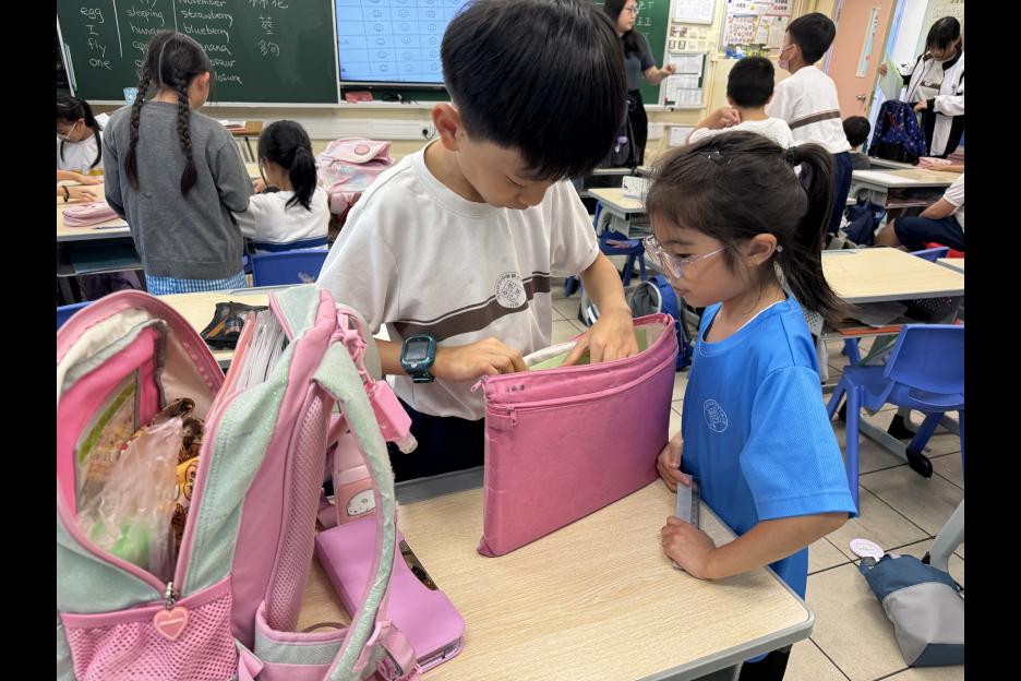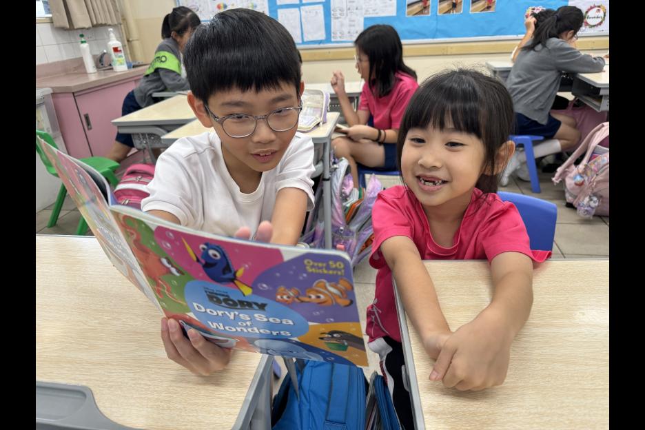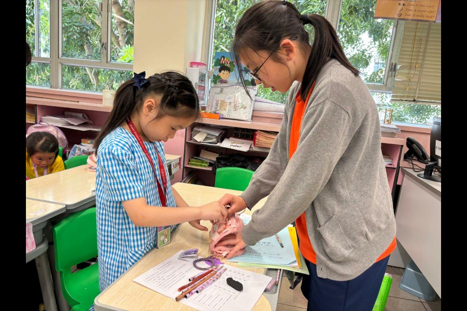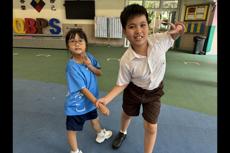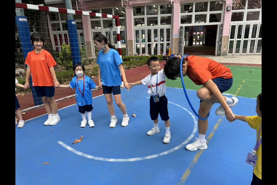 高年級同學與低年級同學於成長課到地下操場進行集體遊戲,建立友愛關係。高年級同學亦會到低年級同學的課室,教導他們執拾書包,培養良好的習慣,並與他們分享正向品格的故事,從而帶出正面的品格及人生觀。