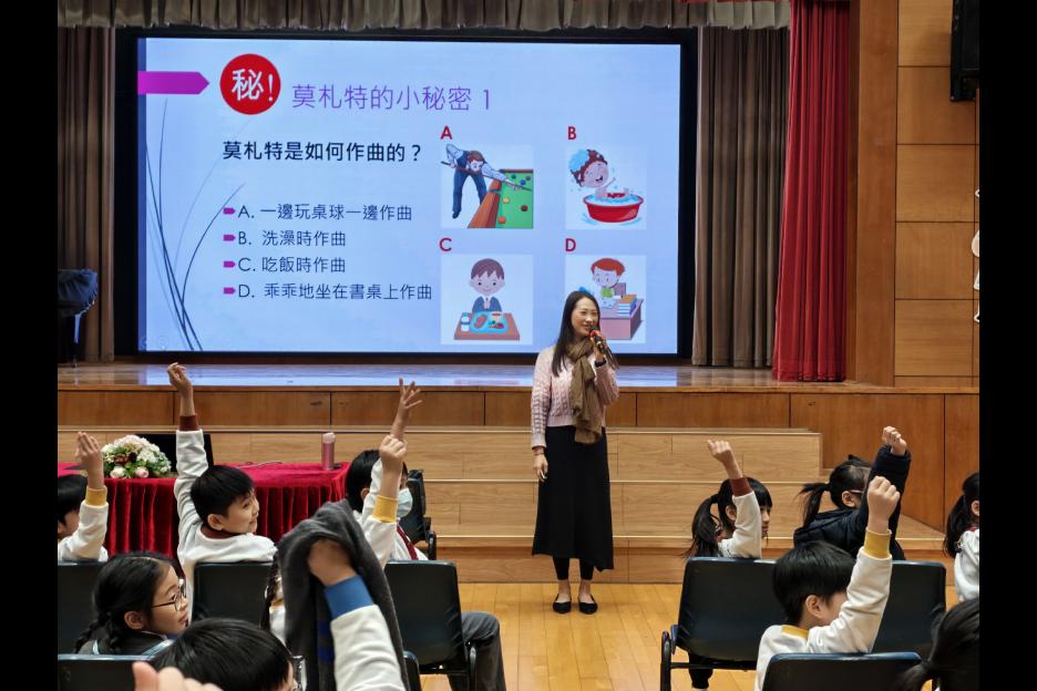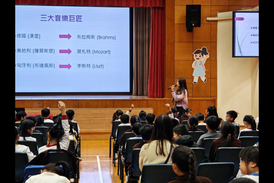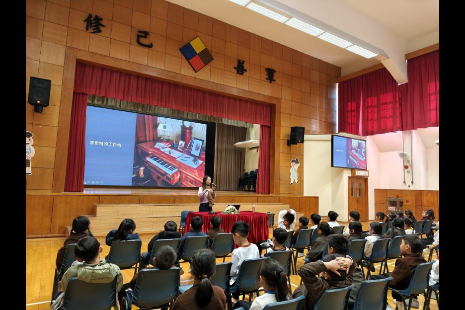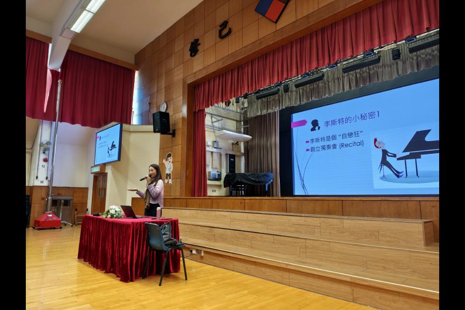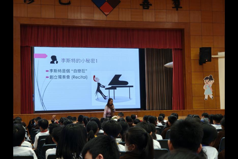 音樂科申請了音樂事務處的校園音樂工作坊計劃,請得黃學慧博士為同學介紹各著名音樂家,並分享他們的有趣的生活秘聞