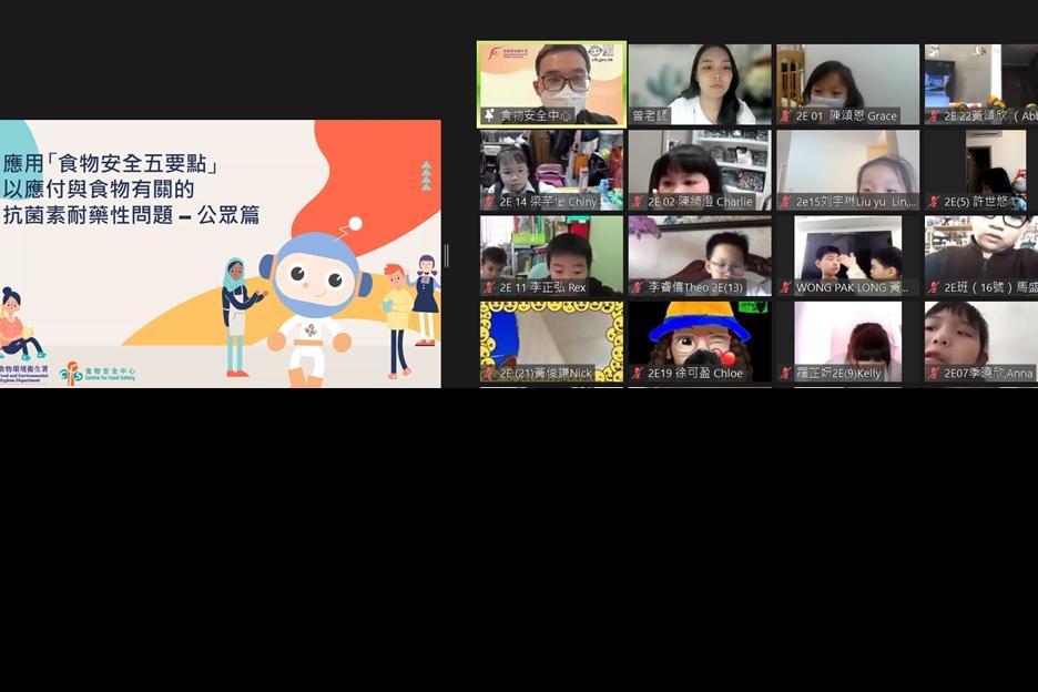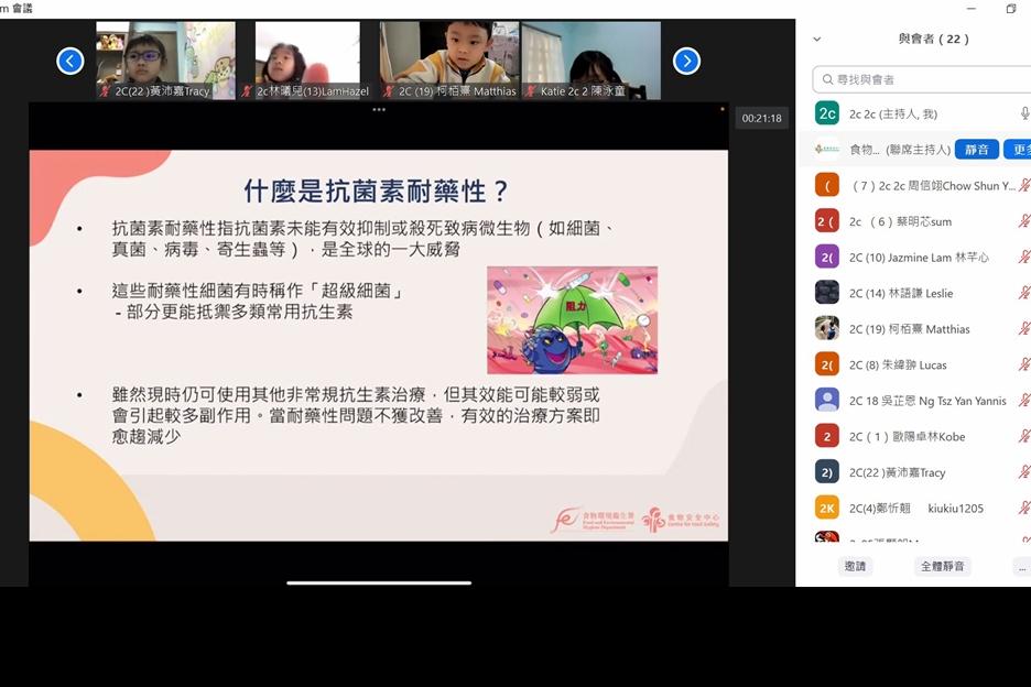 為配合二年級常識科單元《食物與健康》的延伸學習,本校安排二年級全體同學參與「食環署網上教育活動」,活動以zoom形式進行,題目為「食物安全五要點—以應付與食物有關的抗菌素耐藥性問題」,加深對同學食物安全的認識。 |
