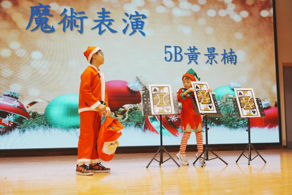 在聖誕聯歡會當天,在禮堂除了有英語話劇、魔術和K-POP等表演,同學、老師和家長義工亦在抽獎活動有豐富收獲,還有各班的課室聯誼活動,以感恩之心慶祝這普天同慶的日子。