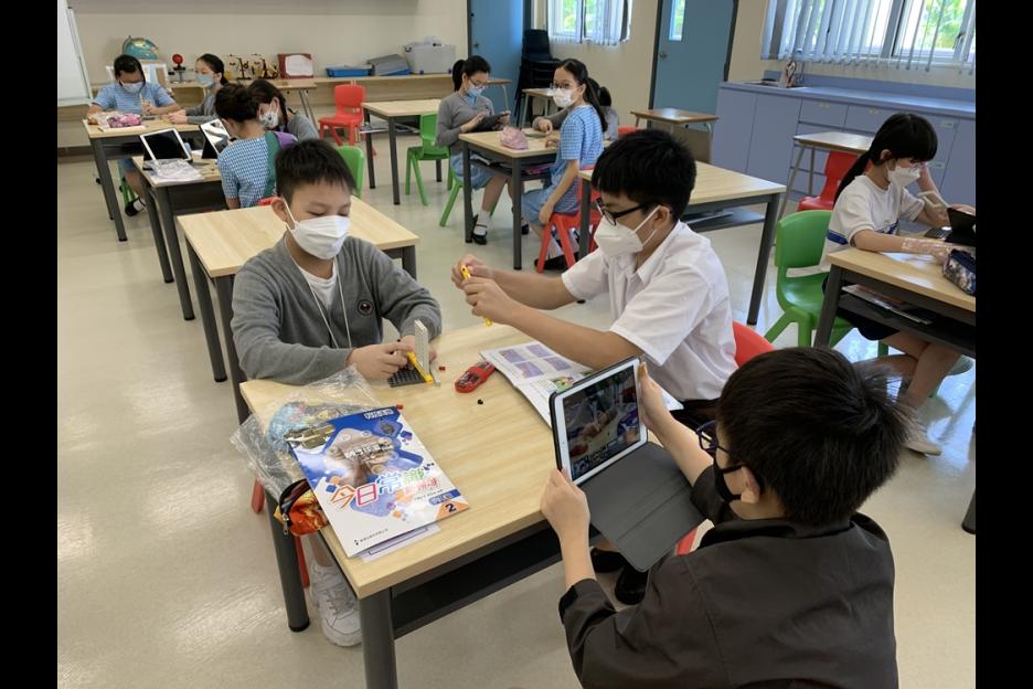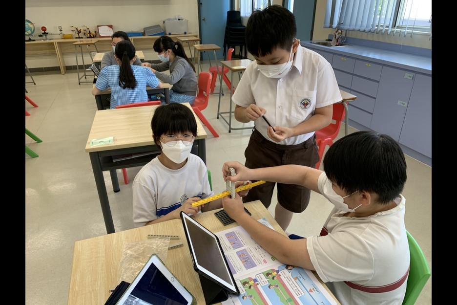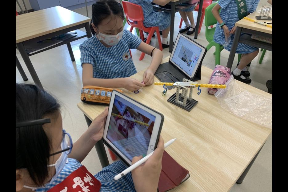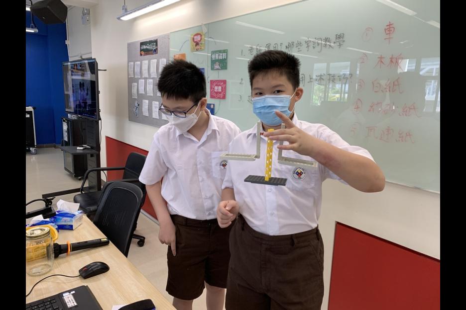 學生利用Gigo積木組件製作天平,在天平上的不同位置擺放重物,以理解槓桿原理及生活上應用的方式。